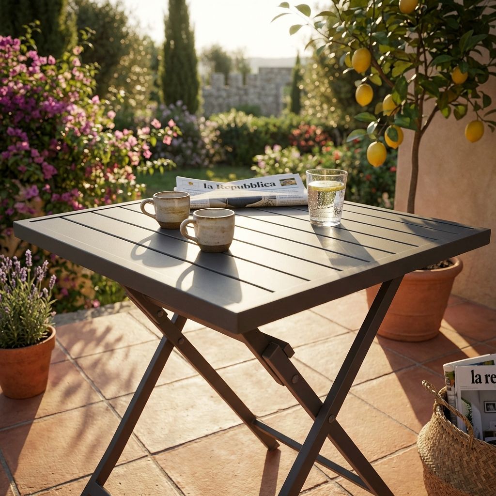 ABELLUS è un tavolo da giardino disponibile in colore taupe, tortora, antracite e bianco con dimensioni 130x70 e 70x70 cm
