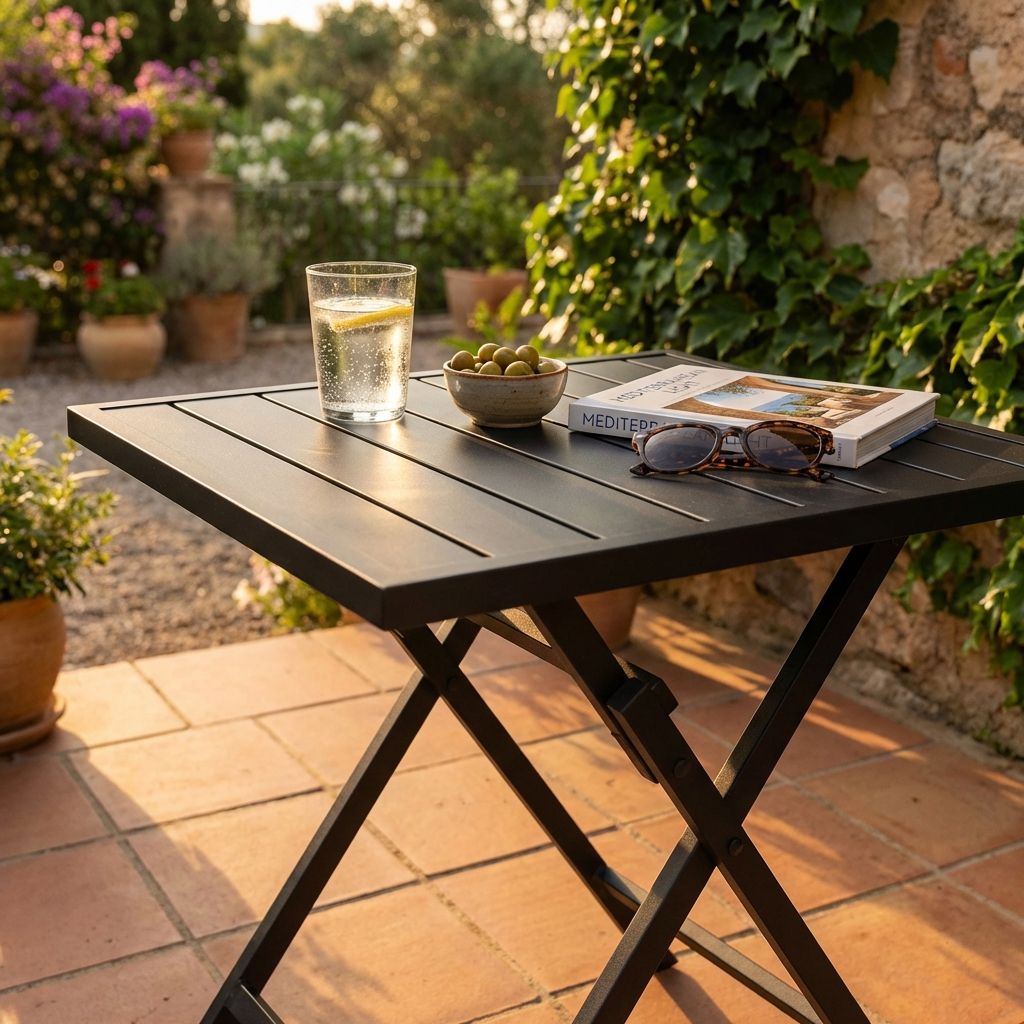 ABELLUS è un tavolo da giardino disponibile in colore taupe, tortora, antracite e bianco con dimensioni 130x70 e 70x70 cm
