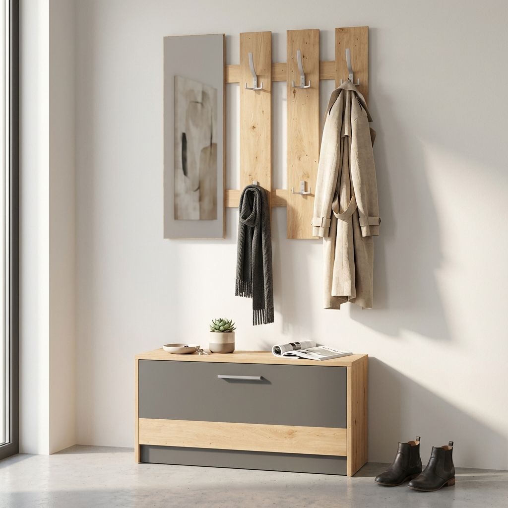 Il mobile ingresso appendiabiti ADDIE è disponibile in 2 colori: bianco e grigio scuro.
