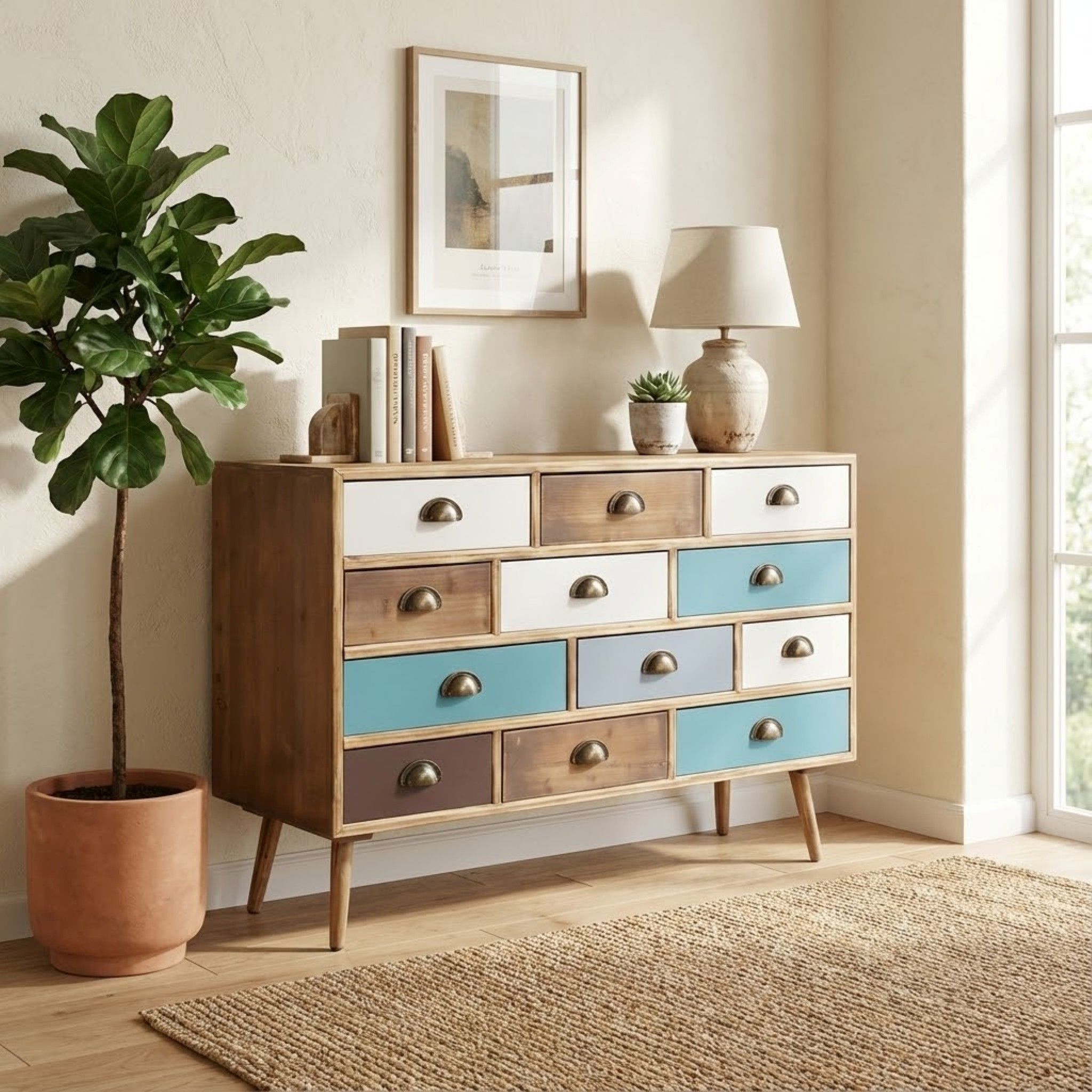 Immagina di avere a casa un mobile che unisce il minimalismo moderno con un tocco di vintage e tanti splendidi colori. Adeline è il perfetto corredo d'arredamento che si adatta a qualsiasi stile di casa. Realizzato con legno d'abete pregiato, dona un tocco naturale ed ecosostenibile alla tua casa. E non dimentichiamoci dei suoi piedi in legno rialzati, che non solo aggiungono un tocco estetico unico, ma rendono anche le pulizie un gioco da ragazzi!