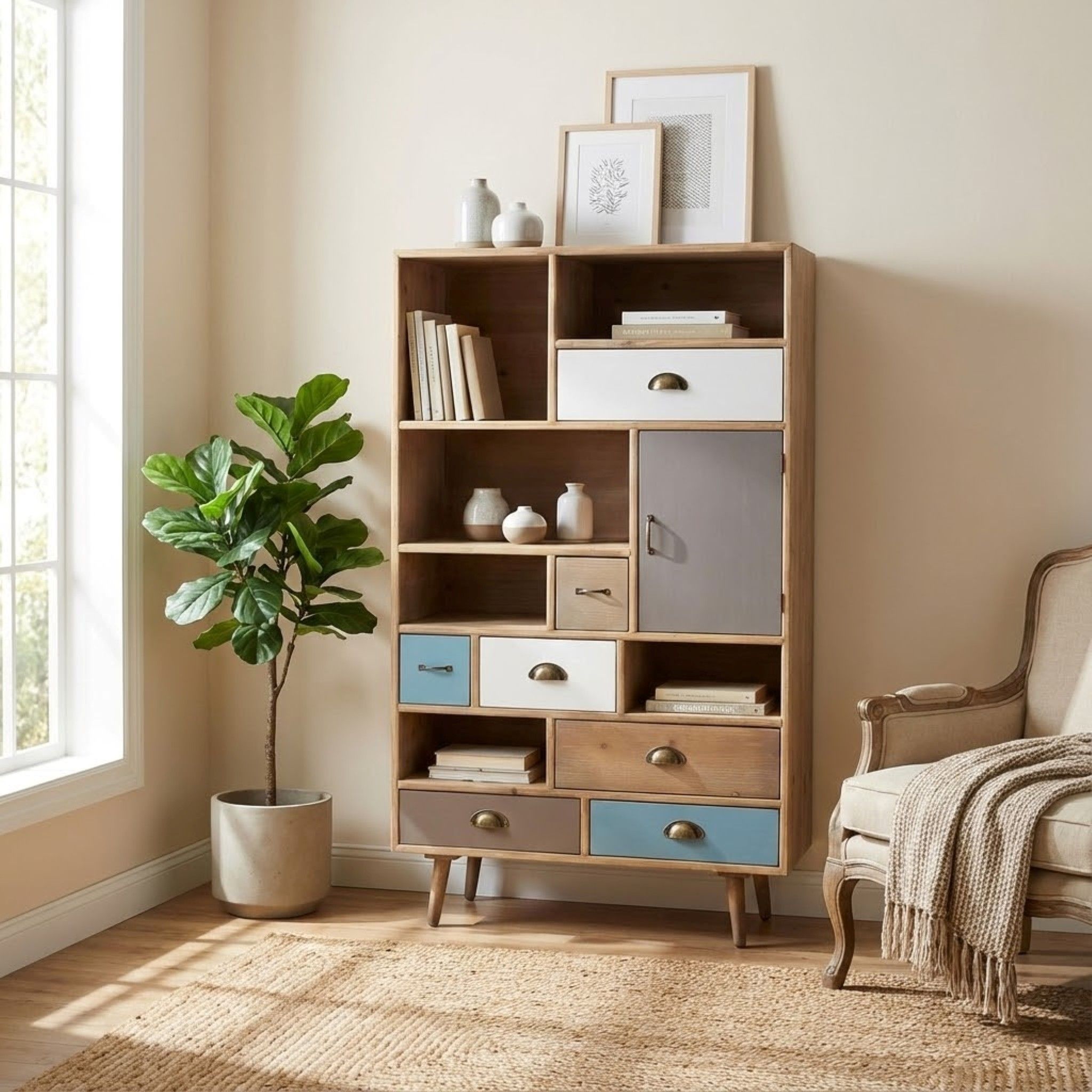 ADELINE è un corredo d'arredamento pieno di colori e uno stile fusion unico. La sua linea semplice e minimalista si fonde con tocchi vintage, rendendolo perfetto per adattarsi a qualsiasi stile nella tua casa. La sua struttura in legno d'abete è pregiata, resistente ed ecologica. Inoltre, i piedi in legno rialzati rendono le pulizie facili e danno un tocco estetico senza paragoni.