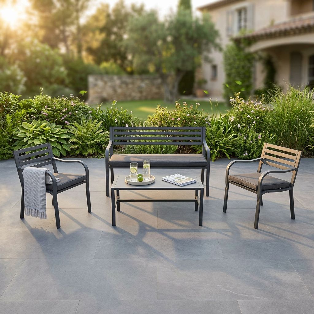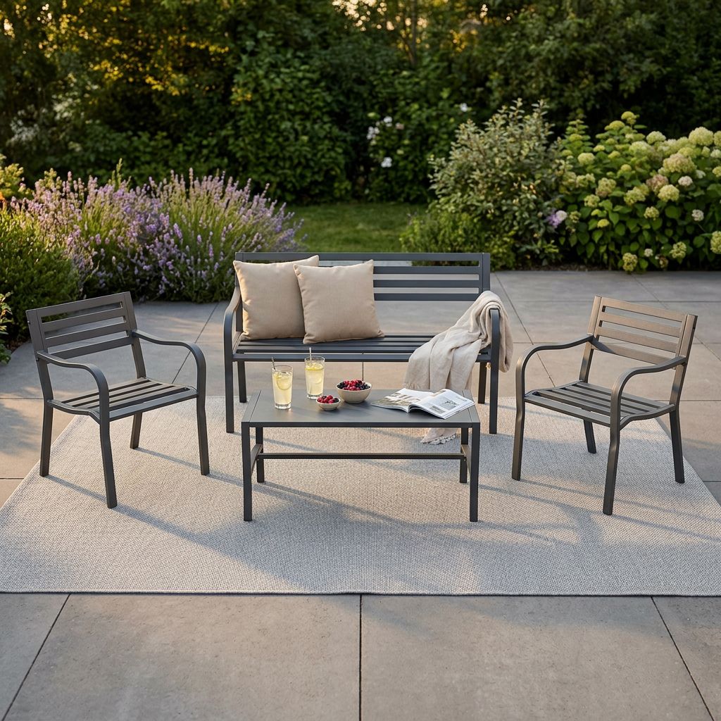 Il salotto da giardino Aelana è un vero gioiello. Con il suo design semplice e classico, è perfetto per completare il tuo arredo esterno. Realizzato interamente in acciaio verniciato color grigio, questo set da giardino offre un tocco di eleganza e praticità. Le due sedie e il divano a due posti sono incredibilmente comodi, ideali per ospitare i tuoi amici e familiari in giornate di relax. Il pratico tavolino completa la composizione, permettendoti di servire bevande e snack con facilità. Ma non è solo la sua estetica che lo rende speciale: la struttura in ferro garantisce una durata nel tempo, rendendolo un investimento affidabile e resistente. Non lasciarti sfuggire questa soluzione elegante per un arredo esterno moderno ed originale. Aggiungi un tocco di stile al tuo giardino con il salotto da giardino Aelana.