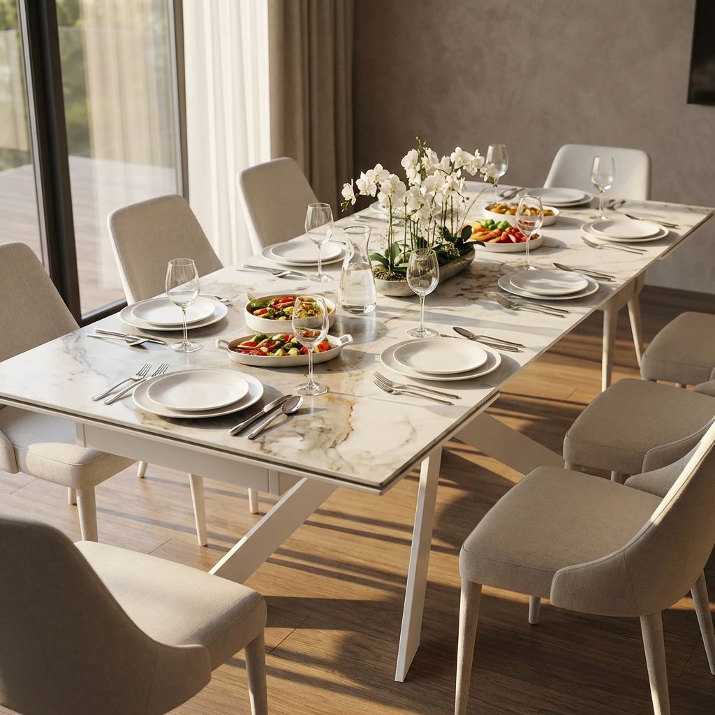 Ma ecco la vera magia di AENIGMA: è un tavolo estensibile che può passare da 160 cm a un'enorme lunghezza di 240 cm! Immagina quanti amici o parenti potresti ospitare comodamente su questo tavolo! Finora sembra fantastico, vero?