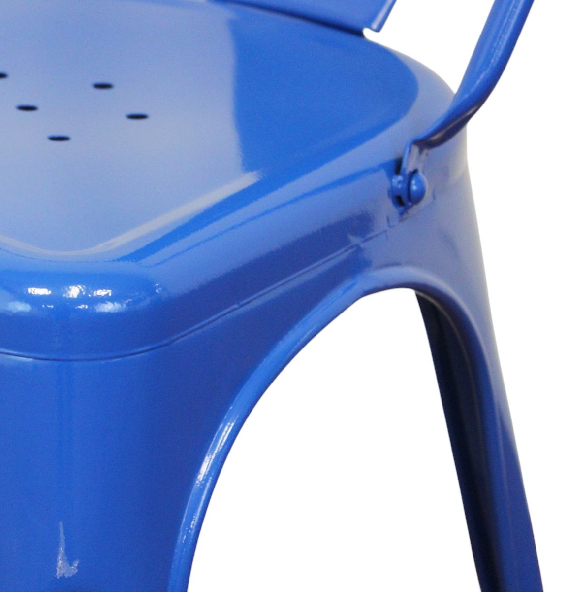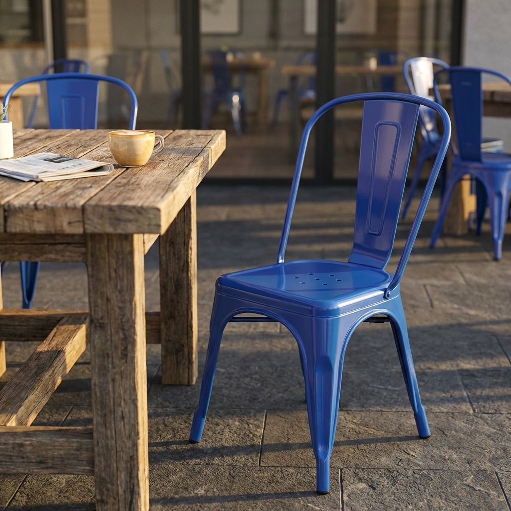 Questa sedia in metallo combina design industriale e praticità. Disponibile in diversi colori, è adatta per uso interno ed esterno. Impilabile e resistente, è perfetta per arredare con stile cucine, sale da pranzo, bar e ambienti moderni