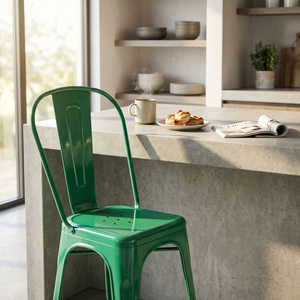 Questa sedia in metallo combina design industriale e praticità. Disponibile in diversi colori, è adatta per uso interno ed esterno. Impilabile e resistente, è perfetta per arredare con stile cucine, sale da pranzo, bar e ambienti moderni