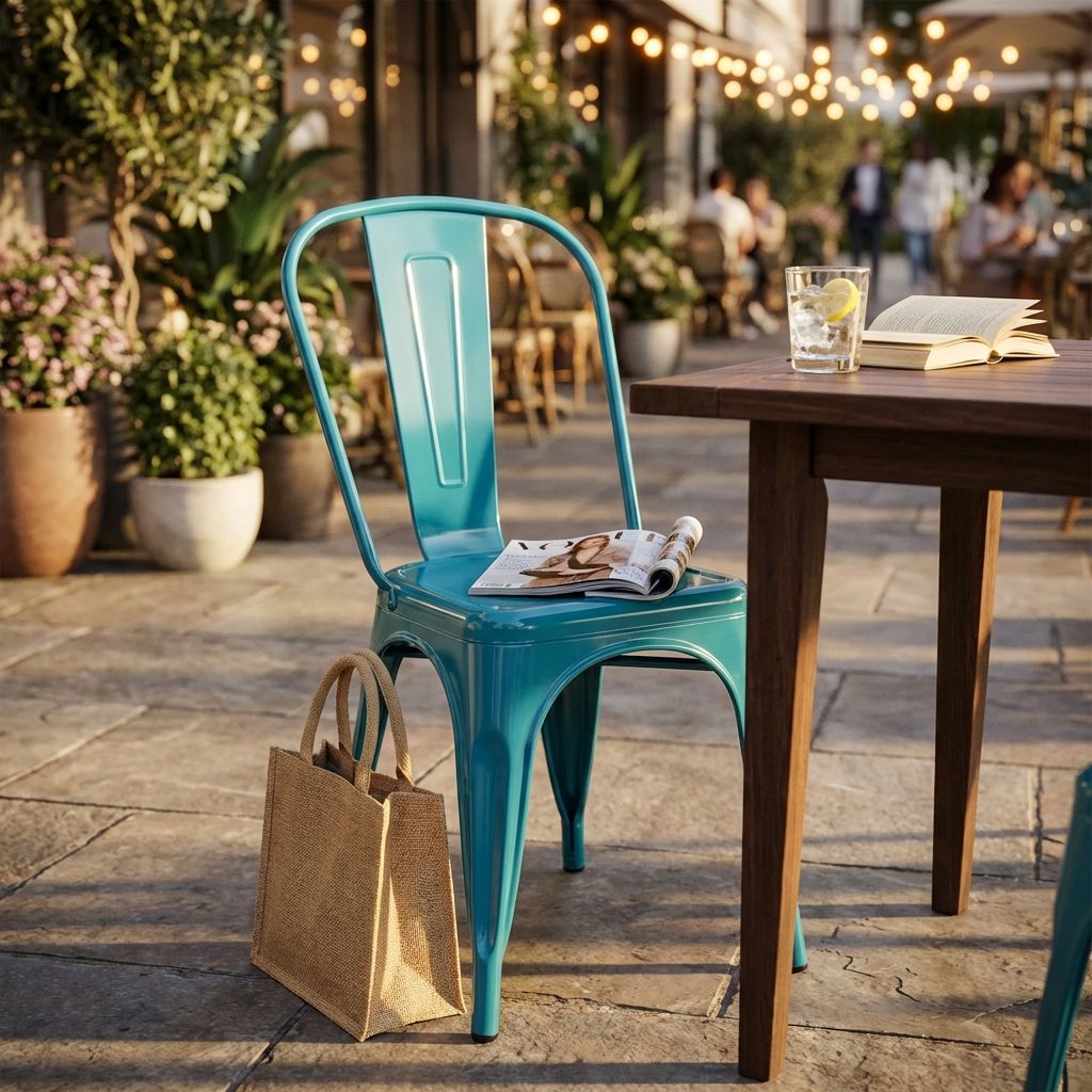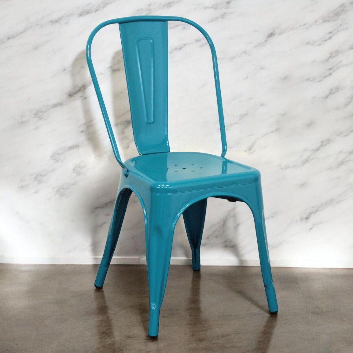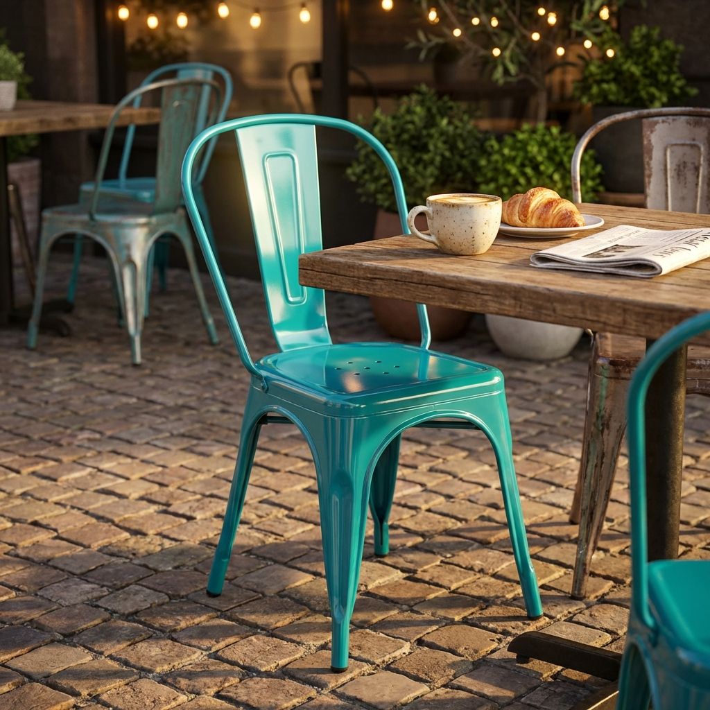 Questa sedia in metallo combina design industriale e praticità. Disponibile in diversi colori, è adatta per uso interno ed esterno. Impilabile e resistente, è perfetta per arredare con stile cucine, sale da pranzo, bar e ambienti moderni
