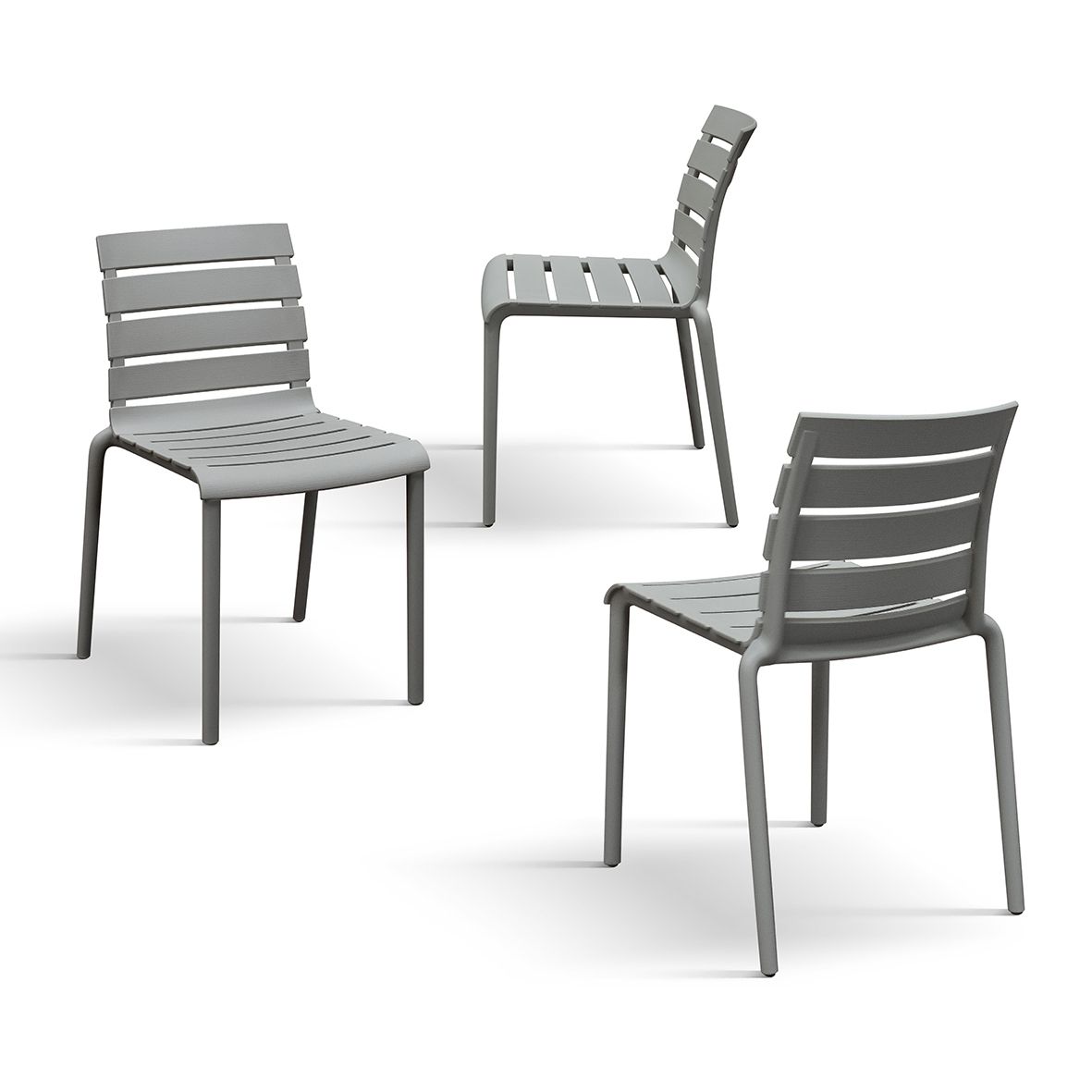 Sedia moderna in polipropilene, disponibile nei colori tortora, grigio, sabbia, arancione, nero e verde. Robusta e leggera, è ideale per spazi interni ed esterni, donando un tocco di design moderno.