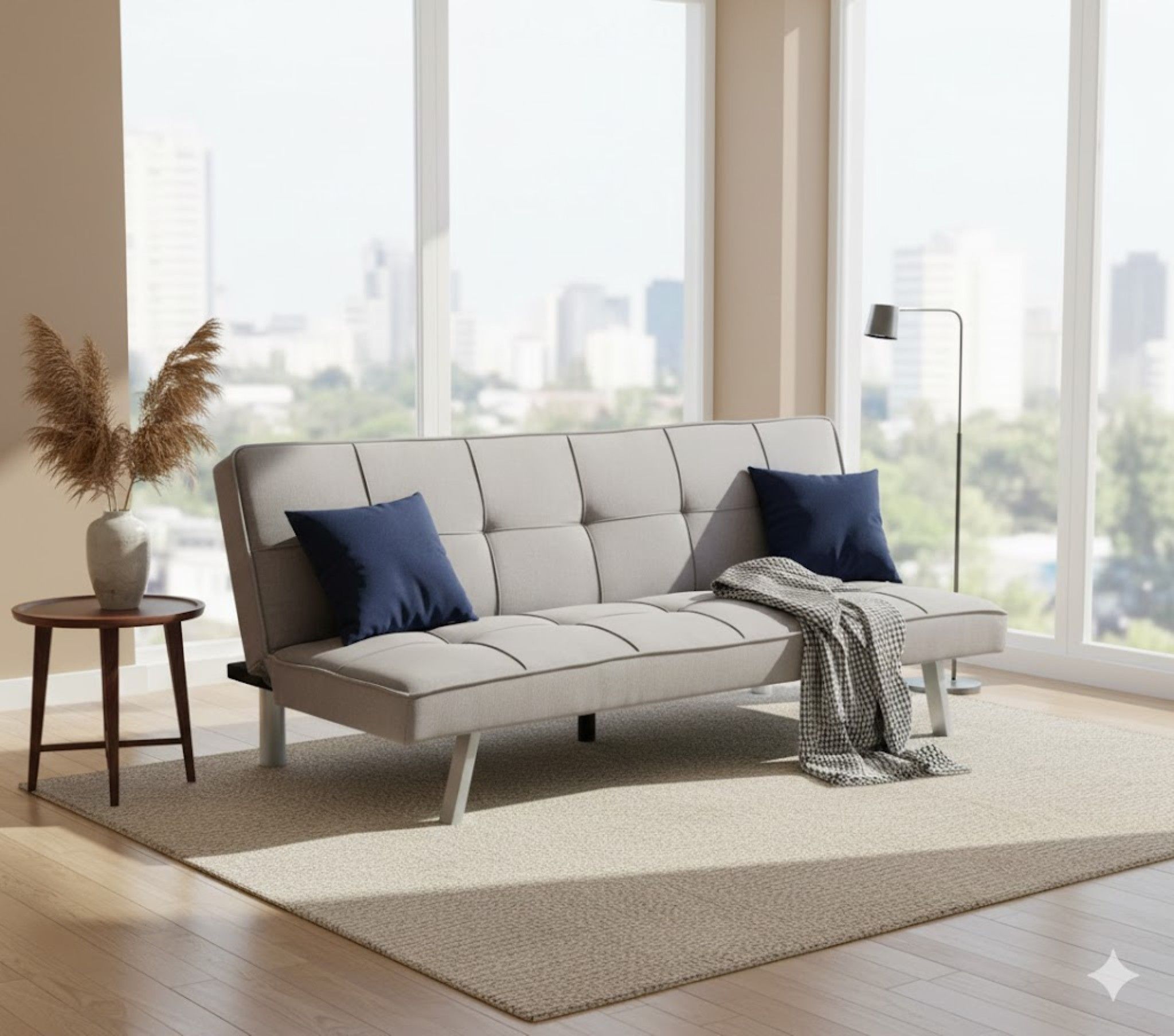Il divano letto ALONSO è il risultato di un intelligente connubio di praticità e design. Il colore dal tono neutro permette di arredare facilmente il tuo spazio con una soluzione estremamente pratica ed elegante. Il divano letto è dotato di un praticissimo sistema "click-clack", che permette di appiattire lo schienale istantaneamente. ALONSO è il complemento perfetto per rendere la casa un nido accogliente. Divano di giorno e letto per la notte, si può trasformare velocemente grazie alla sua praticità. La schiuma all'interno lo rende estremamente comodo e il rivestimento in tessuto è un morbido tocco di eleganza per voi e i vostri ambienti. Il legno e il metallo conferiscono alla struttura robustezza, rendendolo un complemento destinato ad un uso quotidiano.