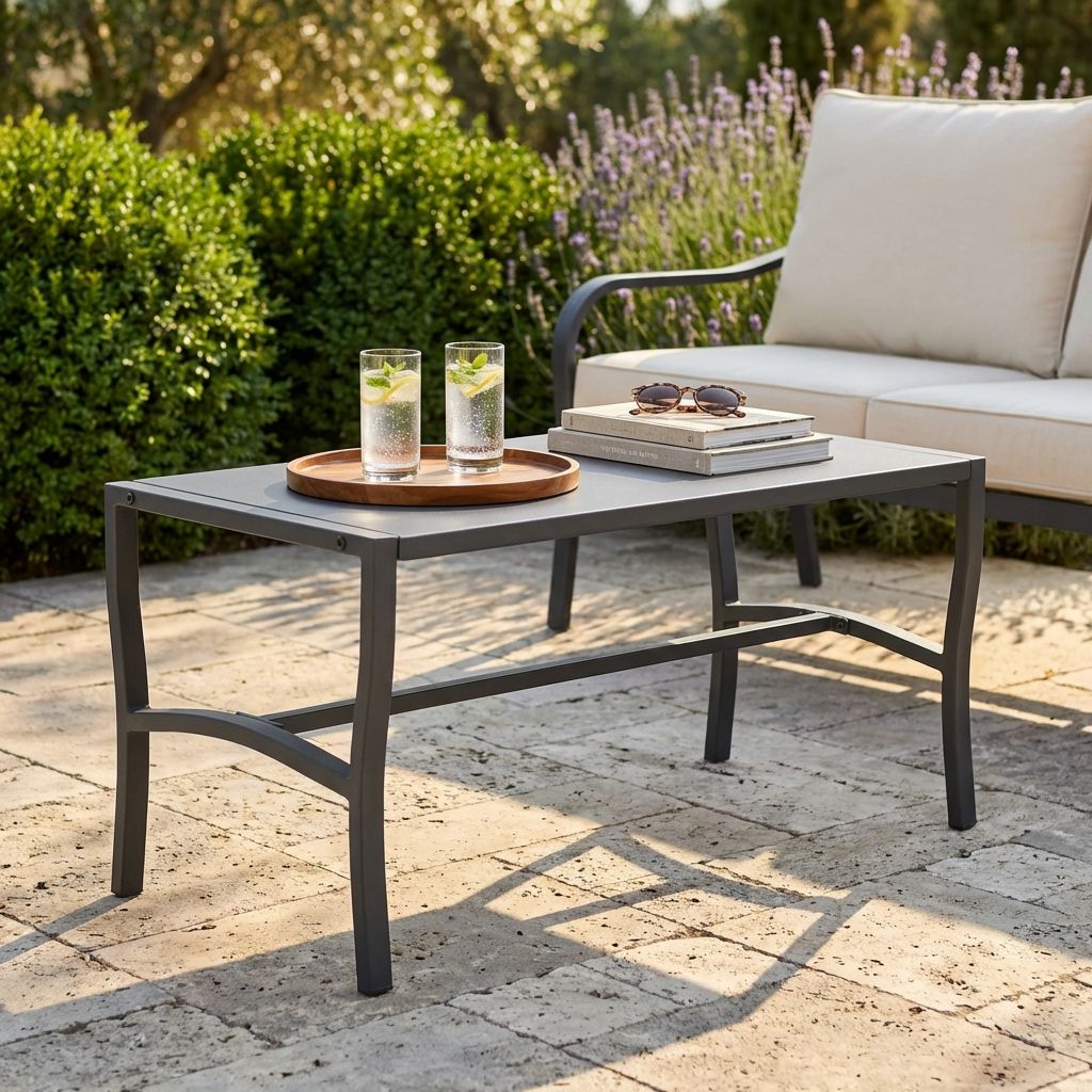 Il tavolino da giardino AMADO è l'ideale per coloro che apprezzano lo stile classico ed elegante. Realizzato in acciaio verniciato a polveri di un elegante grigio antracite, questo tavolino aggiunge un tocco di classe a qualsiasi spazio esterno. La struttura semplice e lineare in ferro è bilanciata da morbide linee arcuate alla base, creando un look leggero e armonioso. Perfetto per appoggiare vasi, riviste o altri oggetti, si combina perfettamente con l'ambiente esterno grazie al suo design essenziale e al colore scuro. Può essere posizionato al centro di un'area living con divani e poltrone, o affiancato ad altri tavolini da giardino della stessa linea, creando un'area di supporto funzionale e di grande impatto visivo. Con il tavolino da giardino AMADO potrai creare angoli romantici e accoglienti nei tuoi giardini, terrazze e balconi.