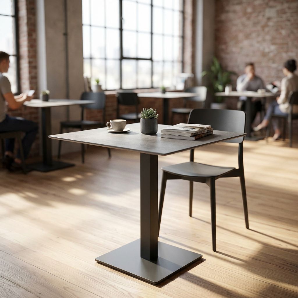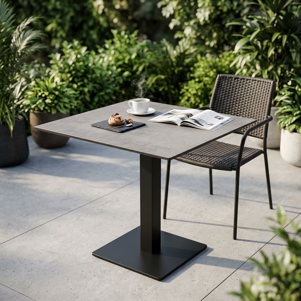 Il piano per tavolo ANNE è disponibile in colore bianco, bronzo, cemento, antracite e marrone sia di forma quadrata o rotonda.