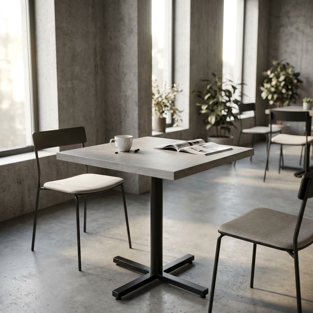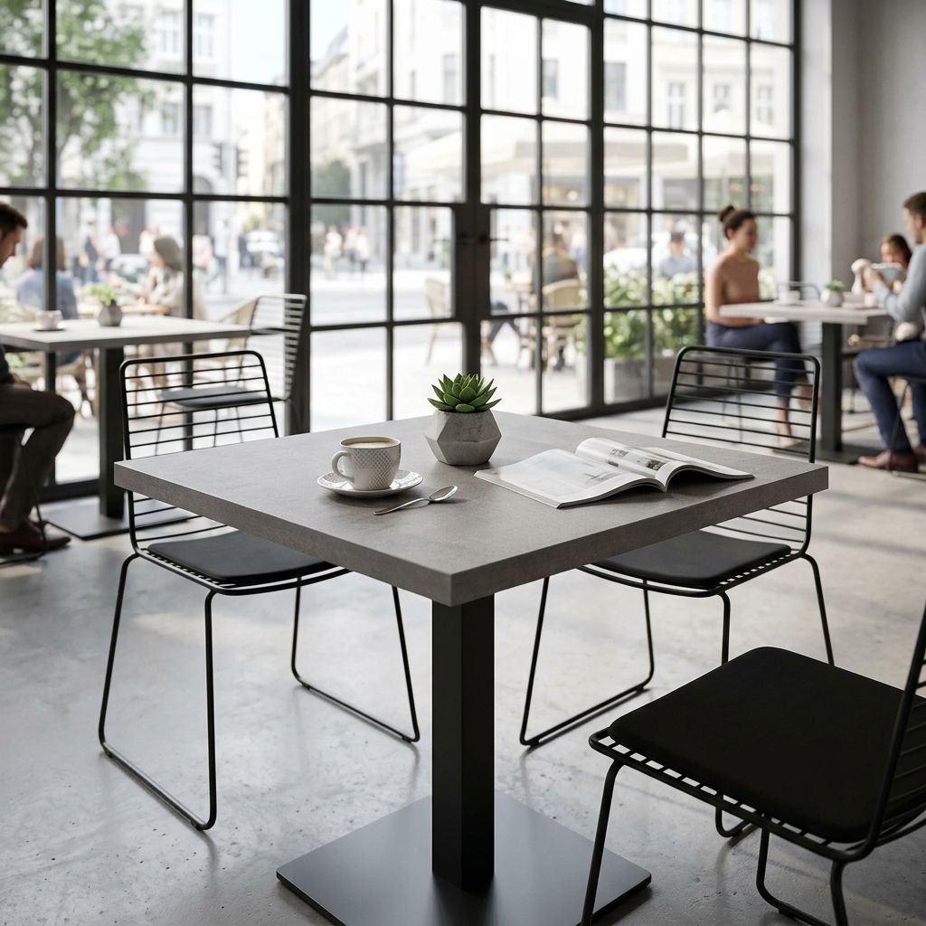 Il piano per tavolo ANNE è disponibile in colore bianco, bronzo, cemento, antracite e marrone sia di forma quadrata o rotonda.