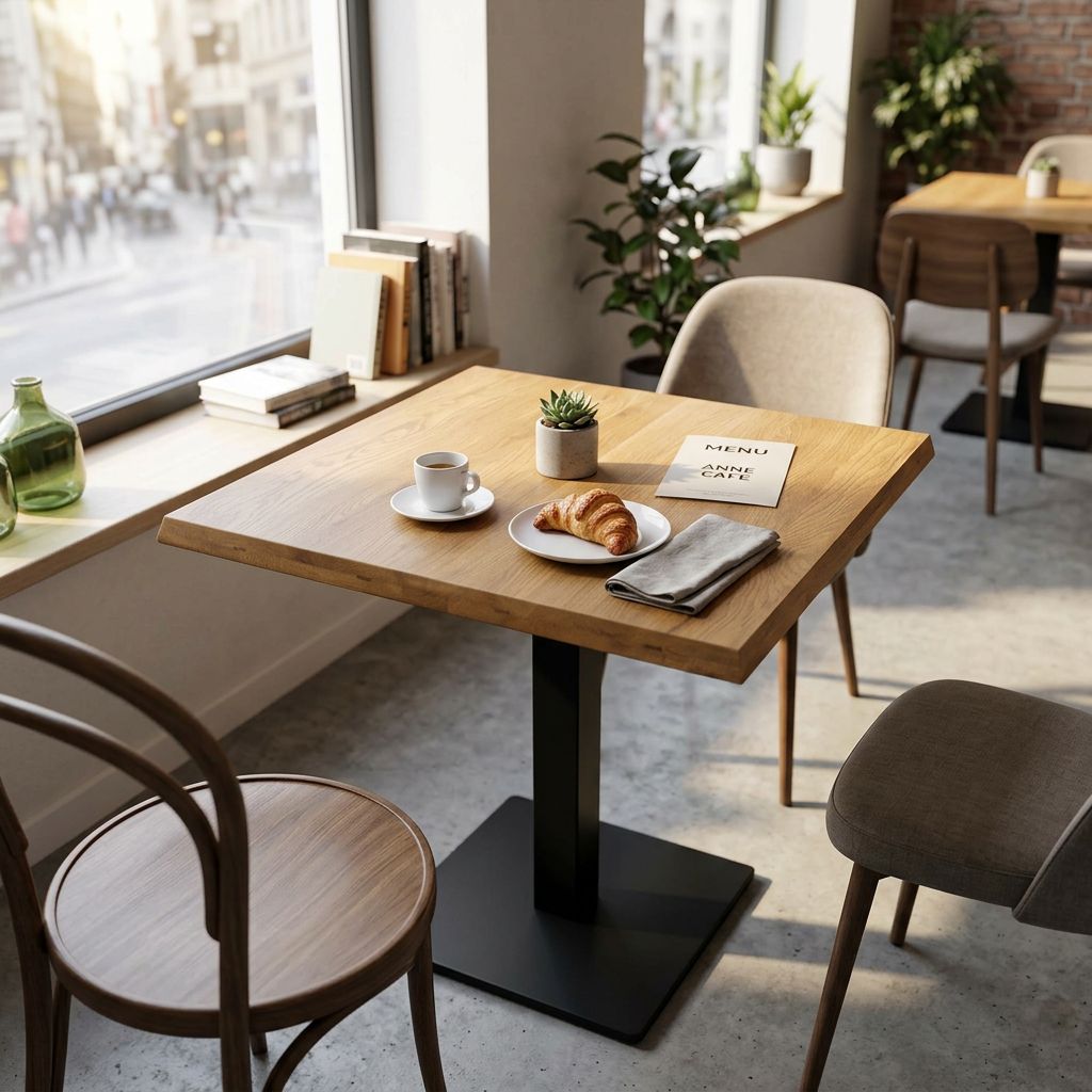 Il piano per tavolo ANNE è disponibile in colore bianco, bronzo, cemento, antracite e marrone sia di forma quadrata o rotonda.
