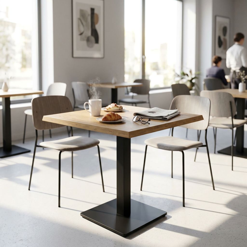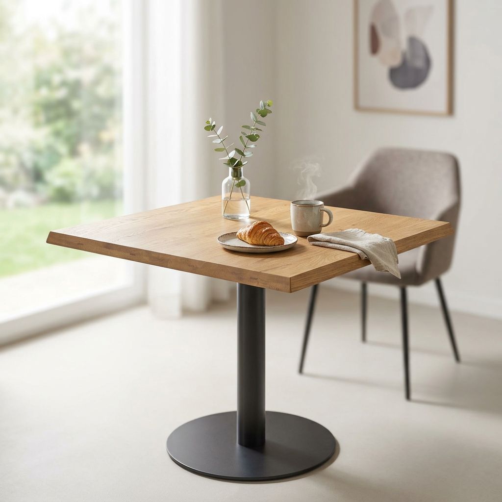 Il piano per tavolo ANNE è disponibile in colore bianco, bronzo, cemento, antracite e marrone sia di forma quadrata o rotonda.