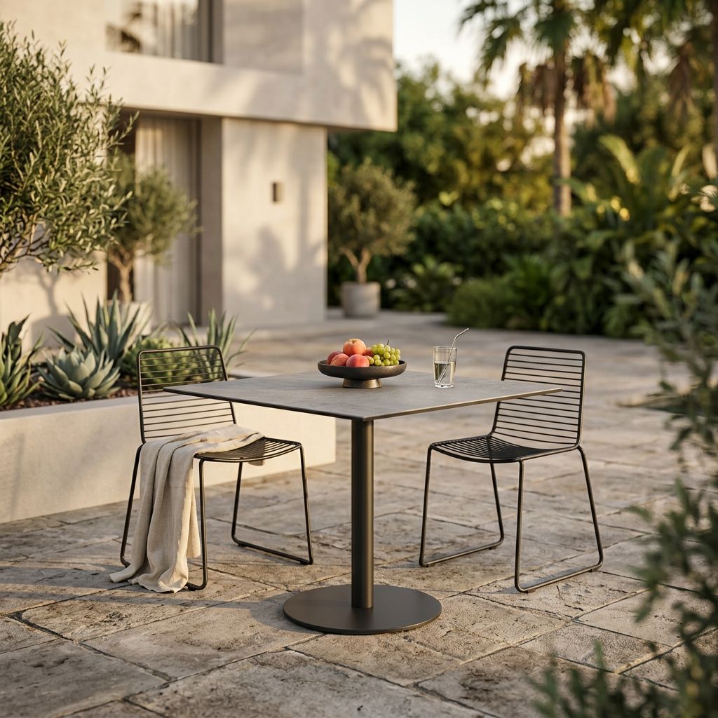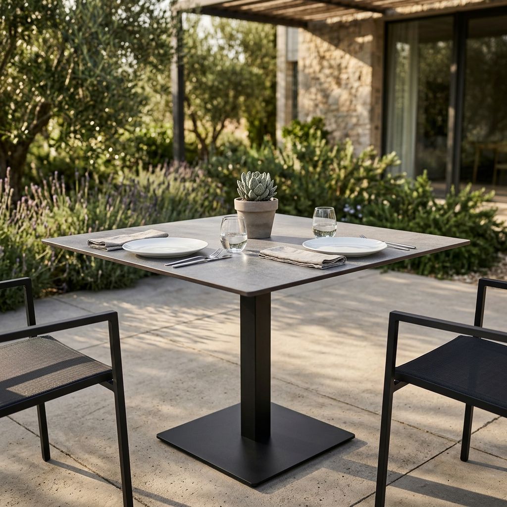 Il piano per tavolo ANNE è disponibile in colore bianco, bronzo, cemento, antracite e marrone sia di forma quadrata o rotonda.