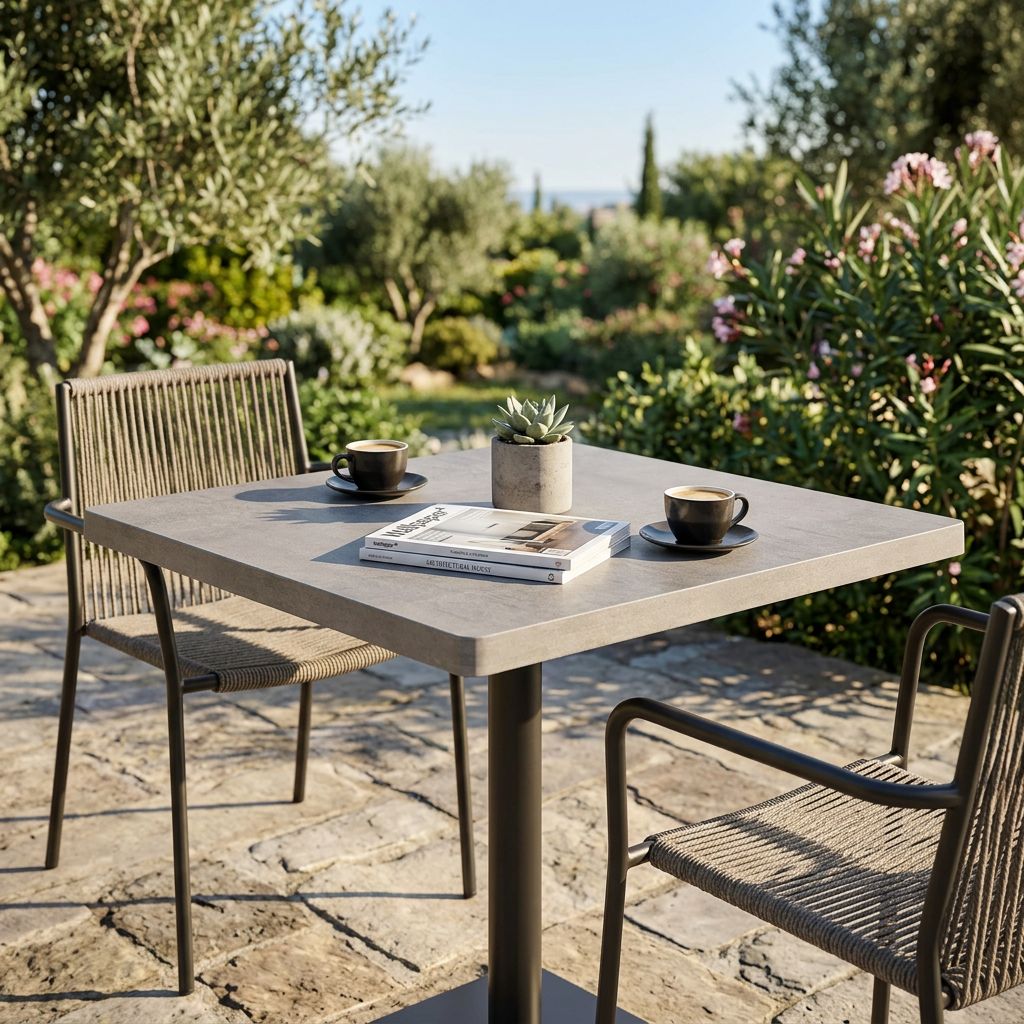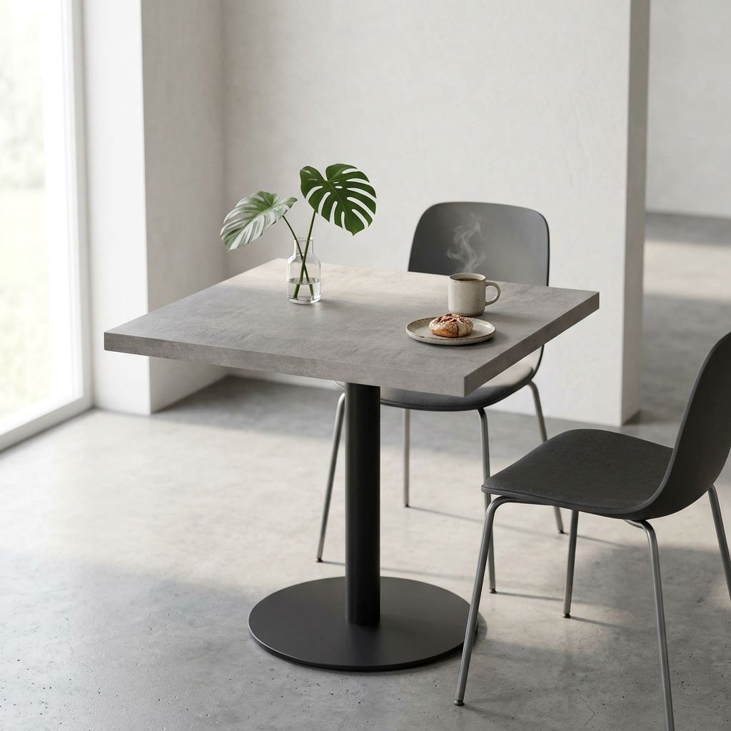 Il piano per tavolo ANNE è disponibile in colore bianco, bronzo, cemento, antracite e marrone sia di forma quadrata o rotonda.