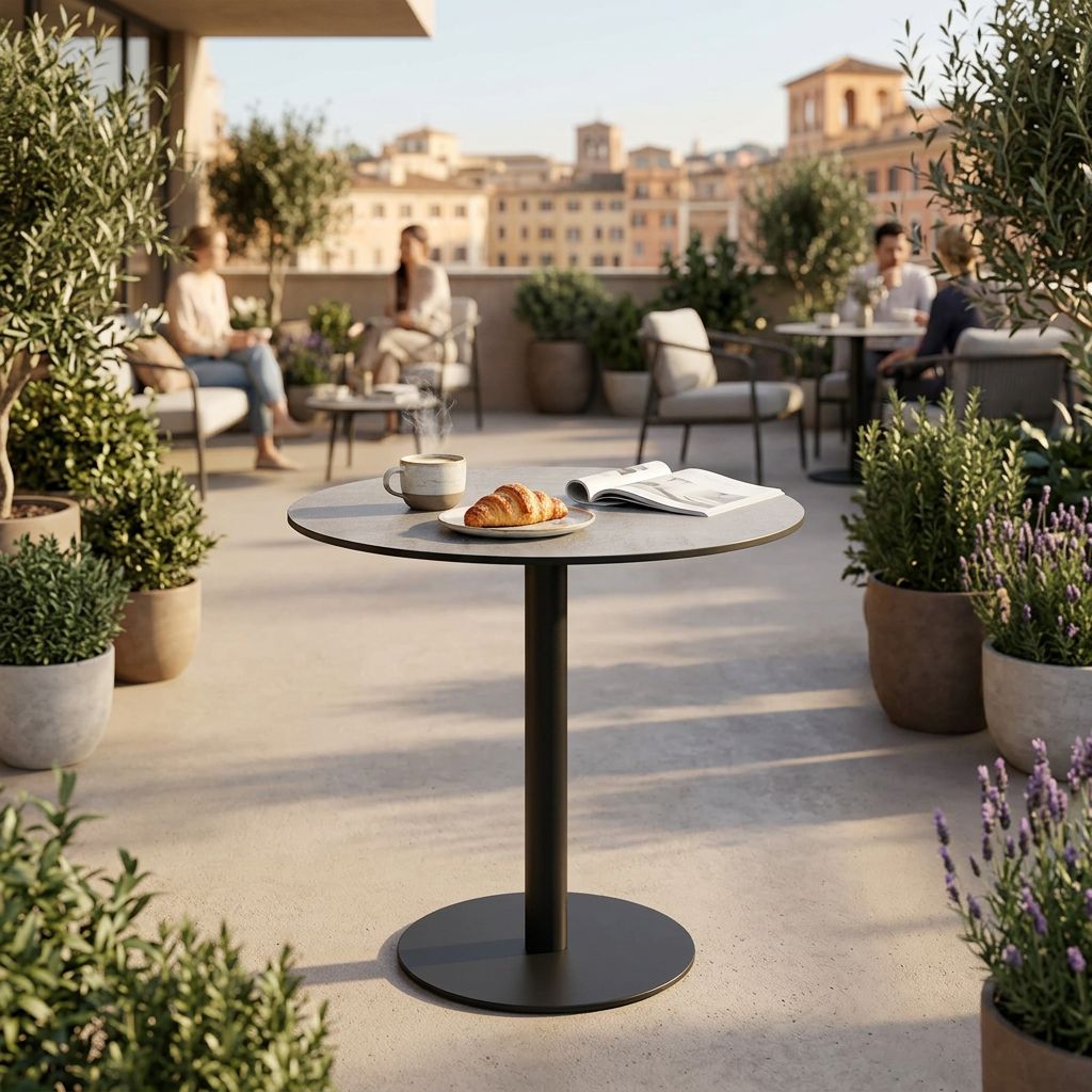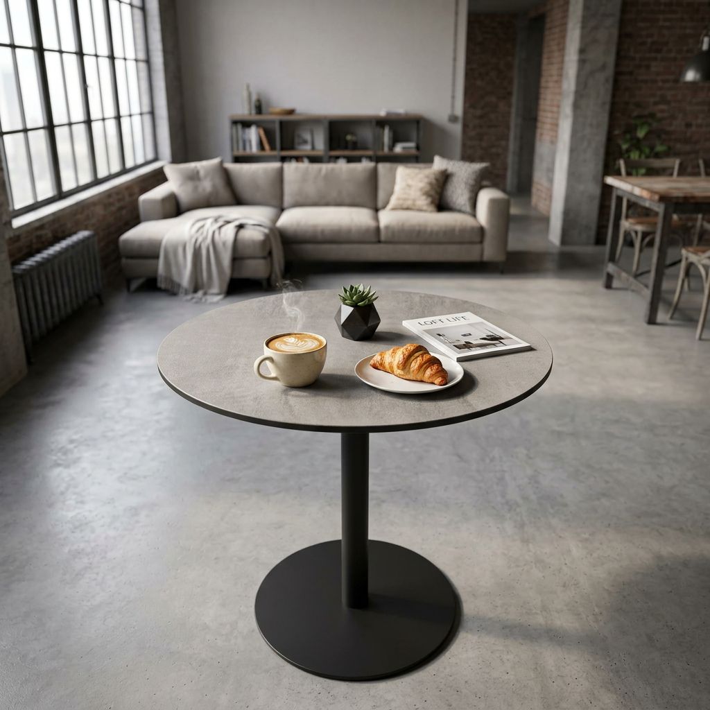 Il piano per tavolo ANNE è disponibile in colore bianco, bronzo, cemento, antracite e marrone sia di forma quadrata o rotonda.