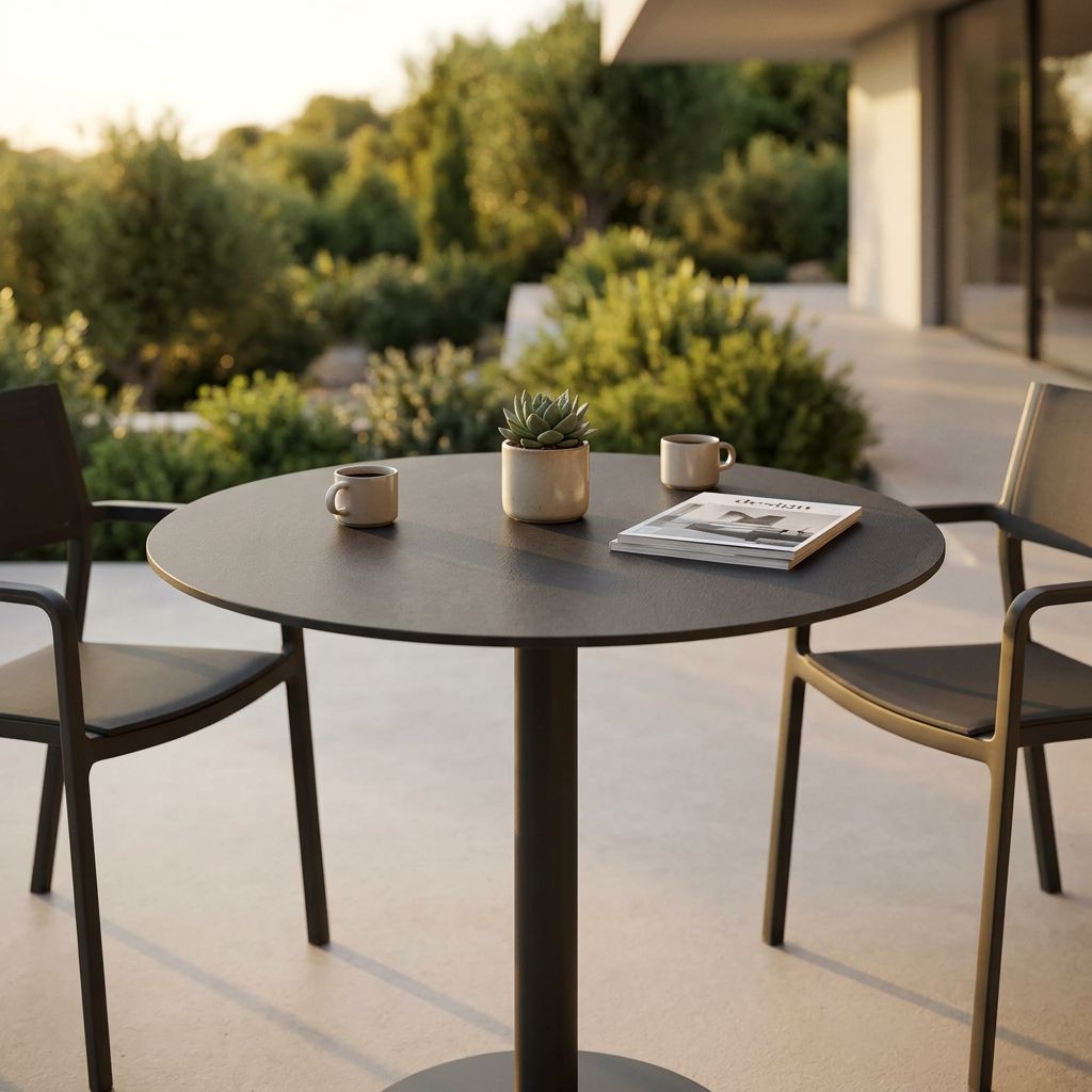 Il piano per tavolo ANNE è disponibile in colore bianco, bronzo, cemento, antracite e marrone sia di forma quadrata o rotonda.