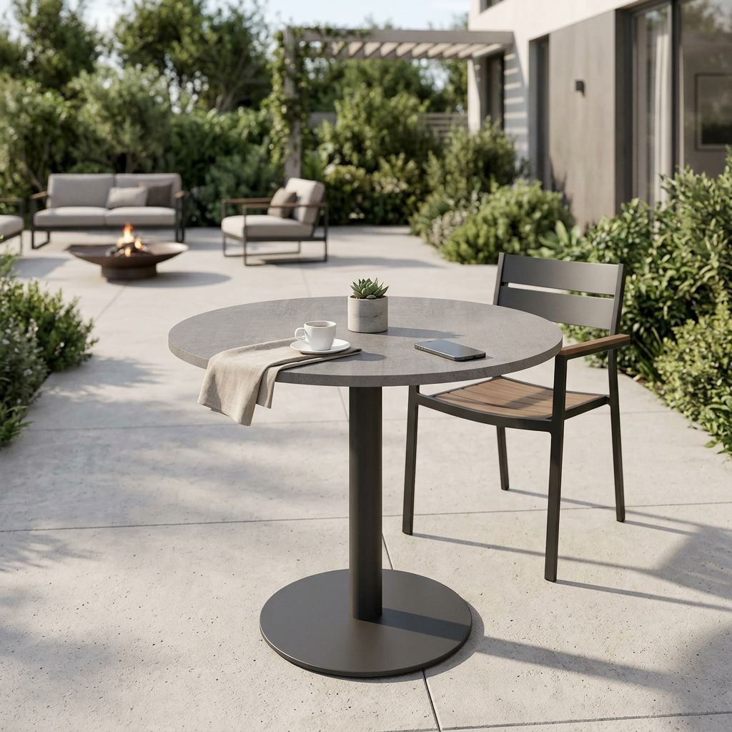 Il piano per tavolo ANNE è disponibile in colore bianco, bronzo, cemento, antracite e marrone sia di forma quadrata o rotonda.