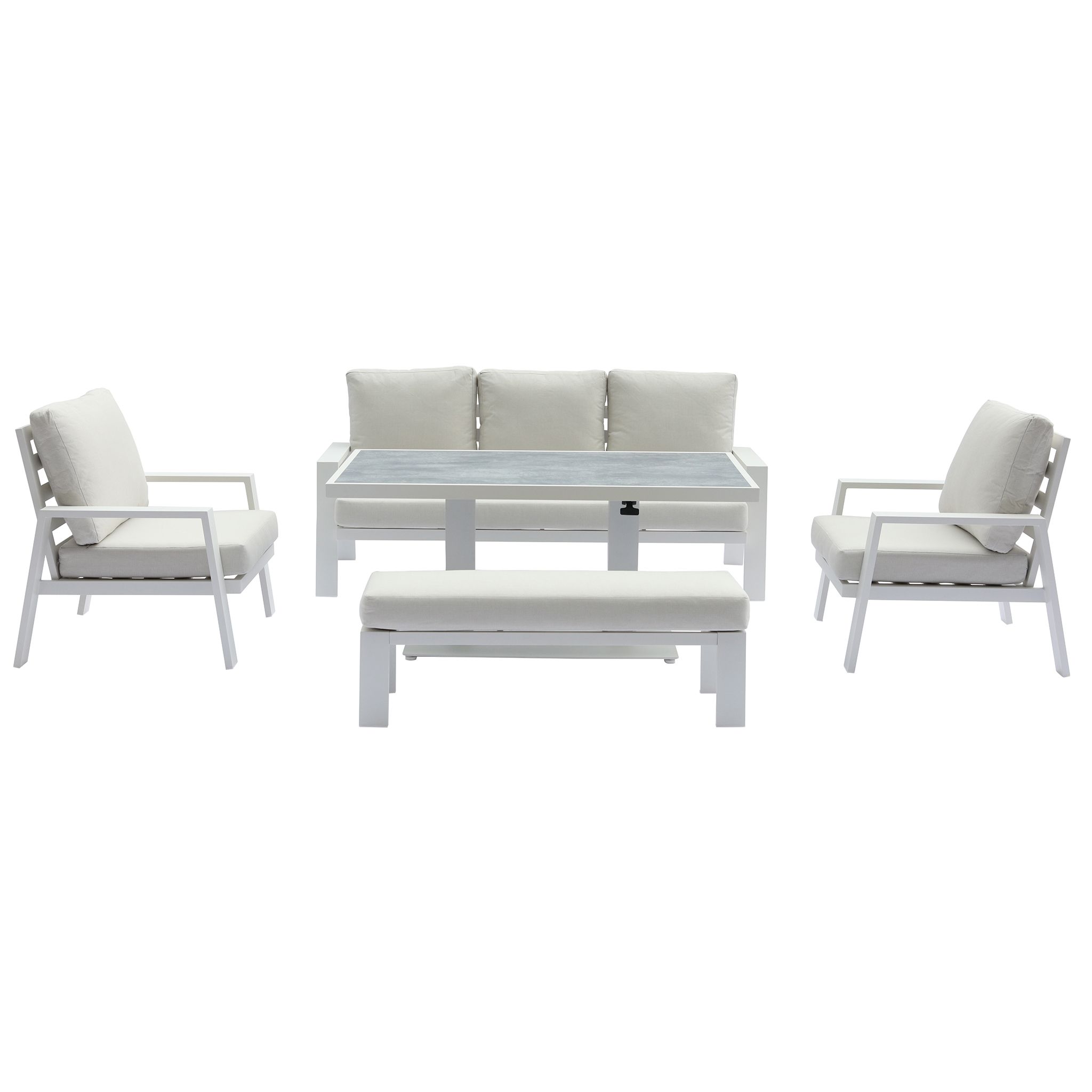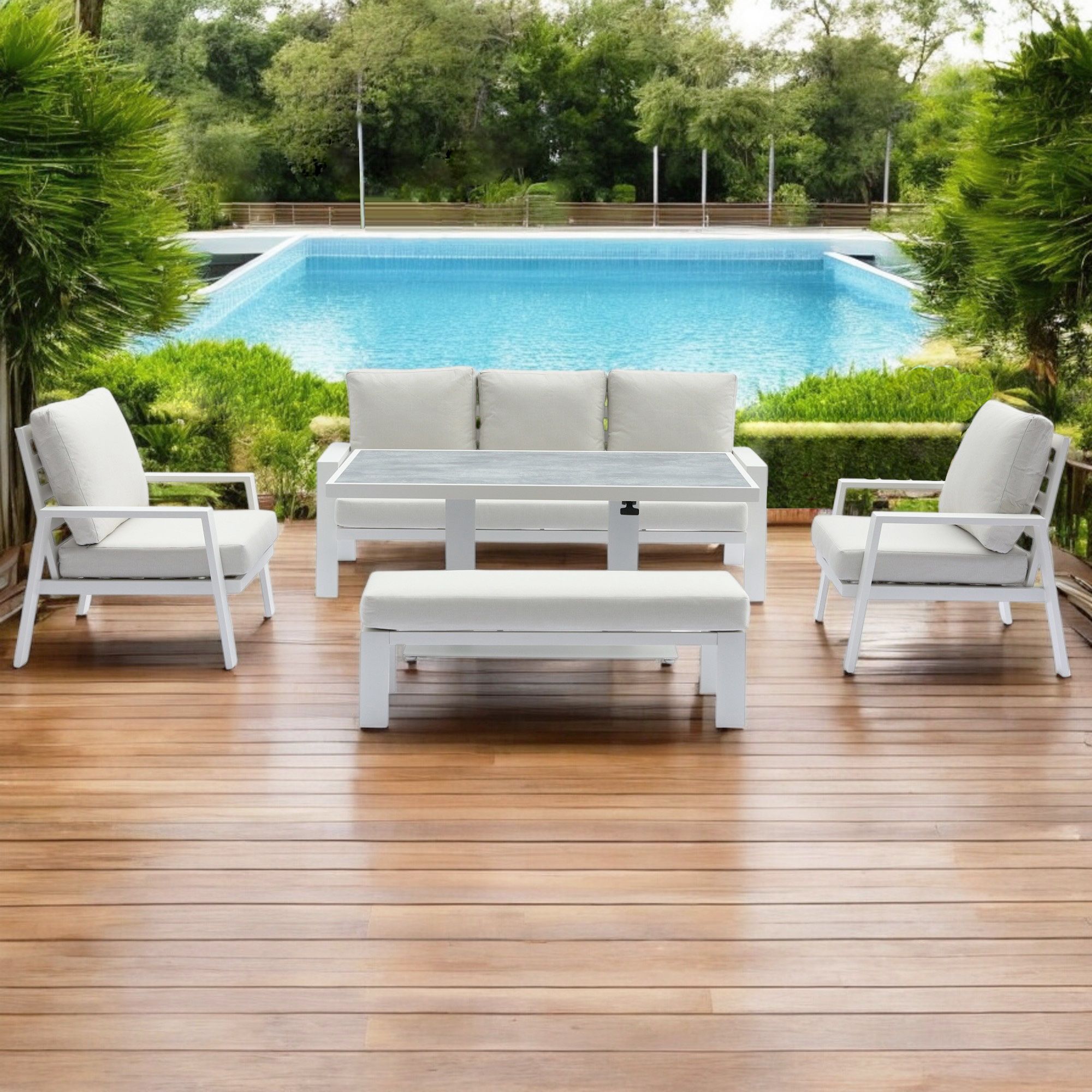 Il salotto da giardino ARAB è un'ode al lusso all'aperto, con la sua struttura in alluminio e cuscini comodi per un'esperienza di relax assoluto. Durevole, elegante e pratico, è l'ideale per trasformare qualsiasi giardino in uno spazio di convivialità e stile.