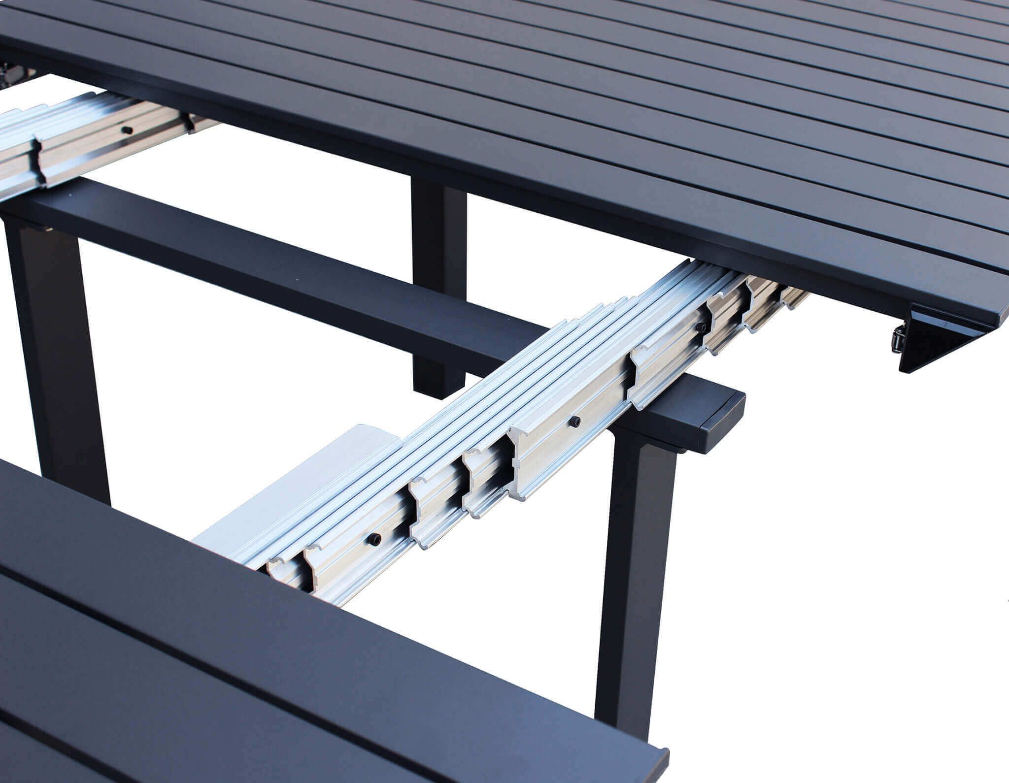Tavolo: La consolle da giardino ARIZONA rappresenta la soluzione ideale per coloro che desiderano un prodotto di alta qualità, pratico e funzionale per il proprio spazio esterno. Realizzata interamente in alluminio, questa consolle si caratterizza per la sua funzione allungabile, che la rende perfetta per ospitare un maggior numero di persone.
