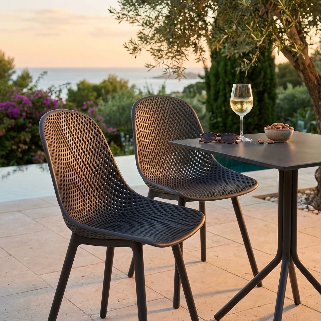 La sedia ARLO è disponibile in colore antracite, taupe e bianco