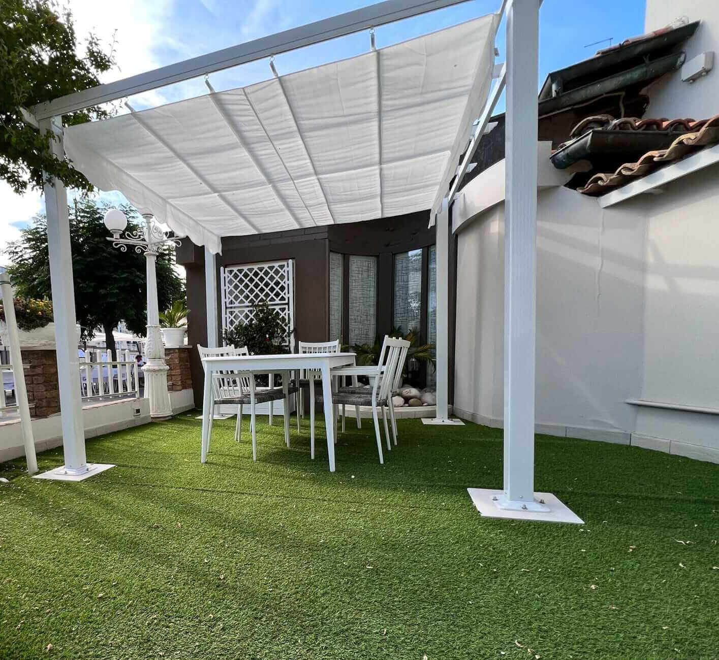 Il gazebo ARON è disponibile in colore bianco, tortora e antracite, in dimensione 3x3 m o 3x4 m