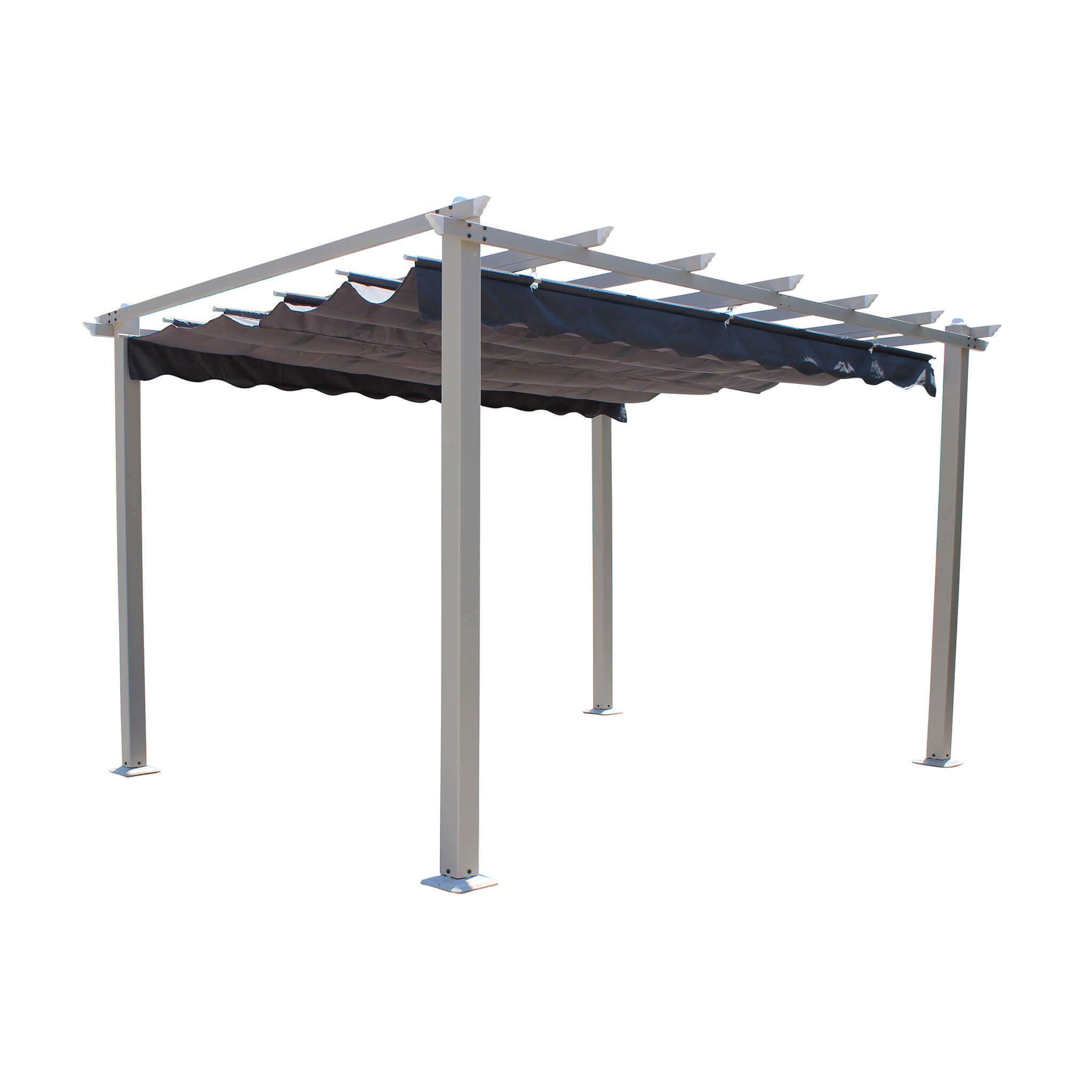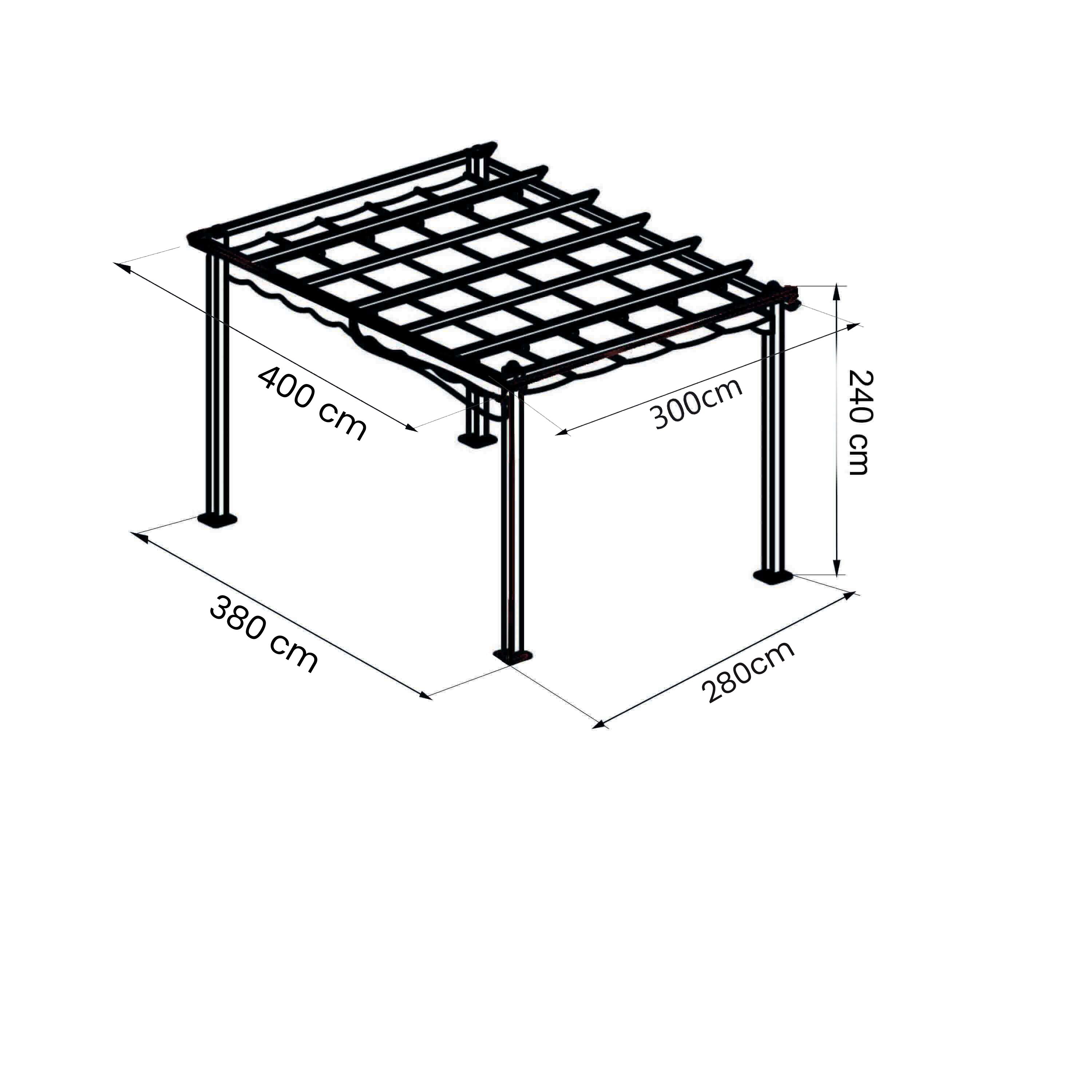 Il gazebo ARON è disponibile in colore bianco, tortora e antracite, in dimensione 3x3 m o 3x4 m