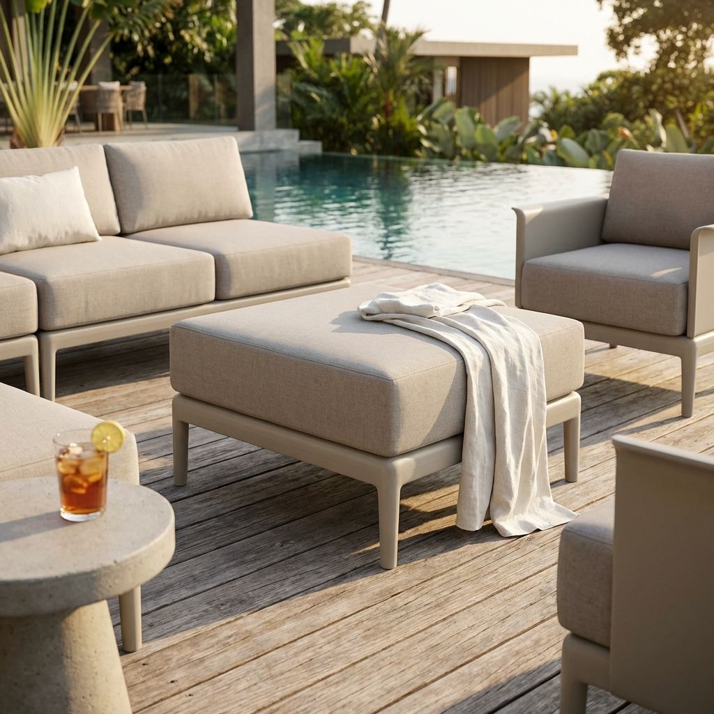 Questo salotto componibile è l'apice della personalizzazione e stile. Con braccioli, schienali, sedute e tavolini venduti separatamente, potrai creare l'arrangiamento perfetto per il tuo spazio esterno. Fai tua l'esperienza del design su misura, costruendo il tuo angolo di paradiso per relax o intrattenimento, disponibile in colore bianco, taupe, tortora o verde.
