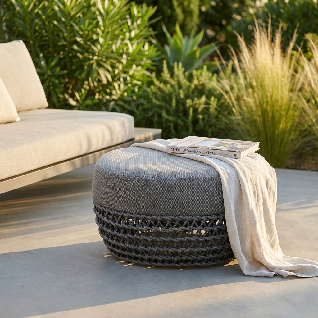Il nostro pouf da giardino, con la sua struttura in alluminio e il tessuto in corda, combina stile e robustezza. Disponibile in beige o grigio, si adatta perfettamente all'ambiente esterno, garantendo durata e un aspetto sempre sofisticato. È l'ideale per chi desidera unire comfort e design, rendendo ogni spazio aperto un invito al relax.