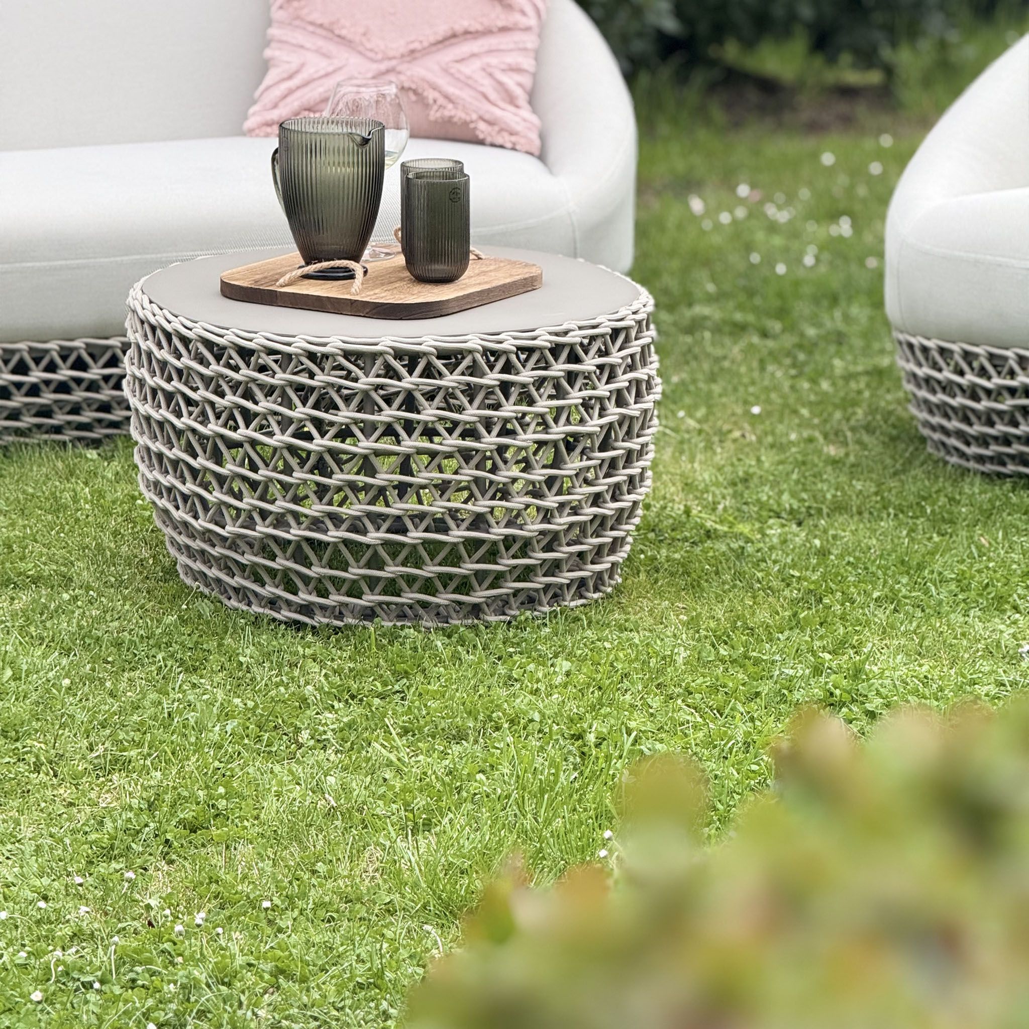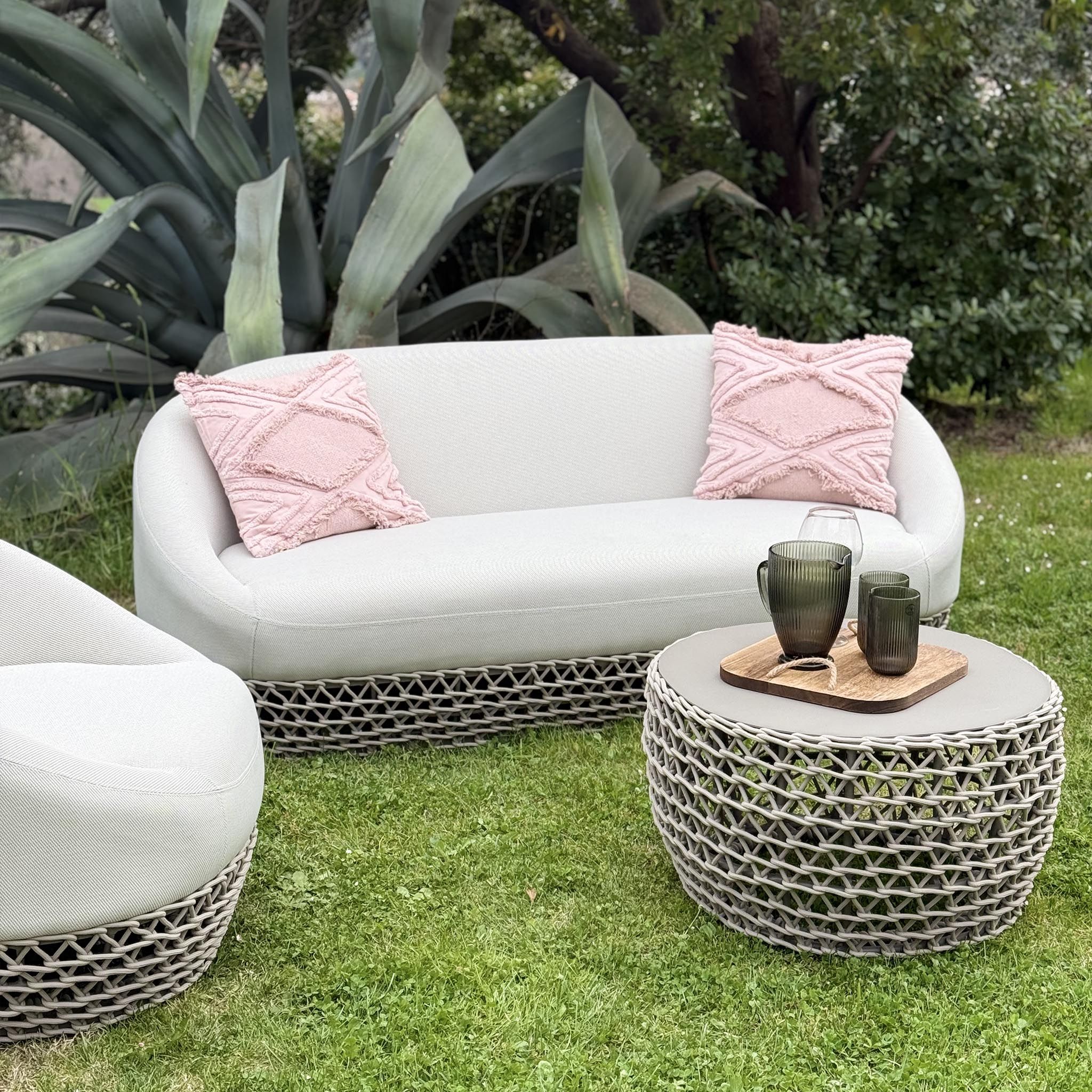 Il tavolino da giardino in alluminio e corda è un'aggiunta indispensabile per chi apprezza l'equilibrio perfetto tra eleganza e funzionalità. Disponibile in grigio o beige, si adatta con naturalezza a qualsiasi schema di colore del tuo spazio esterno, rendendolo un punto di ritrovo chic e accogliente.