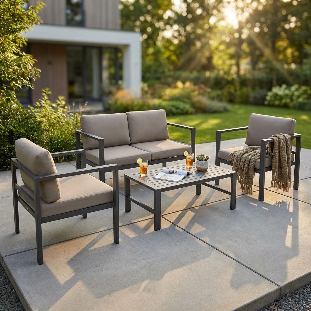 il salotto da giardino in alluminio di alta qualità, resistente agli agenti atmosferici. Con versioni da 4 o 5 posti, offre comfort e stile. Cuscini idrorepellenti e varietà di colori. Trasforma il tuo giardino in un'oasi di relax con Aulus.