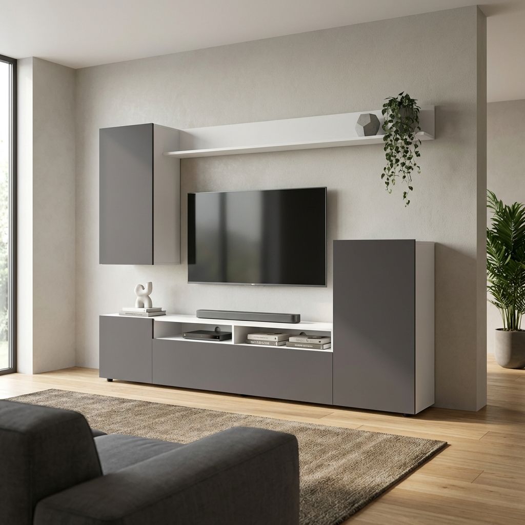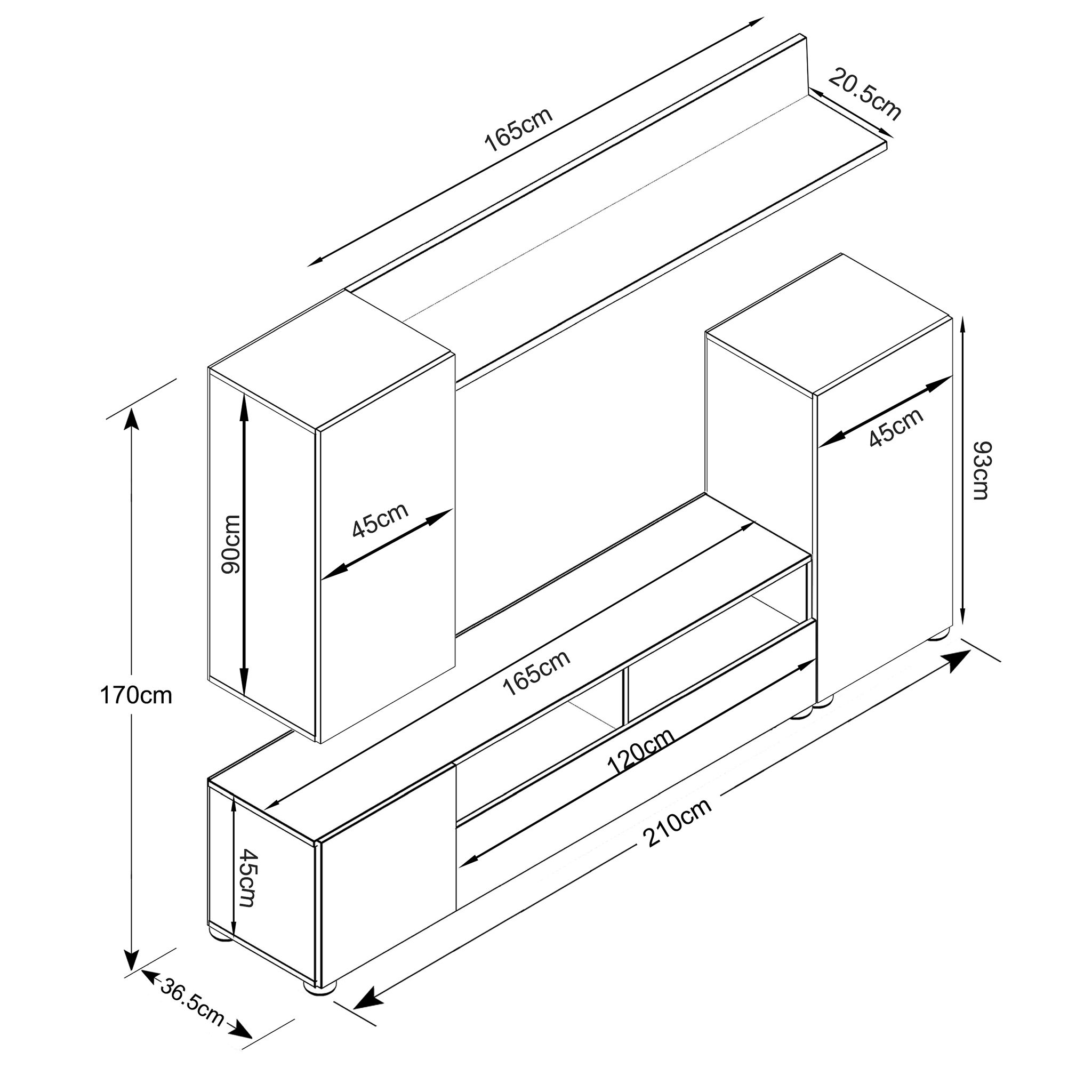 La parete attrezzata AURELIO è disponibile in marmo, bianco, rovere grigio, marrone e nero