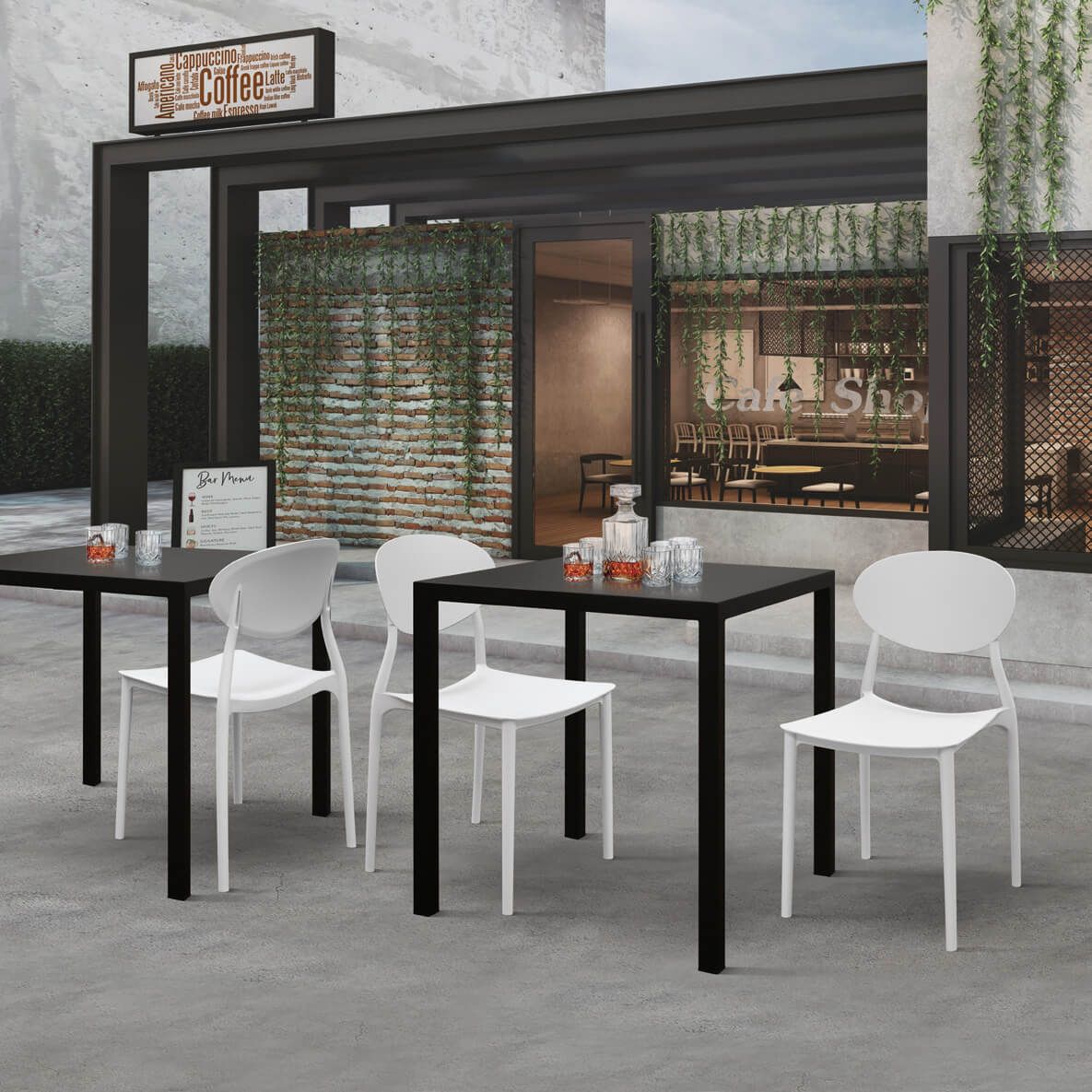 Il tavolo AUTOLIV è disponibile in due differenti colori e misure: bianco e antracite, da 70x70cm e da 80x80cm.