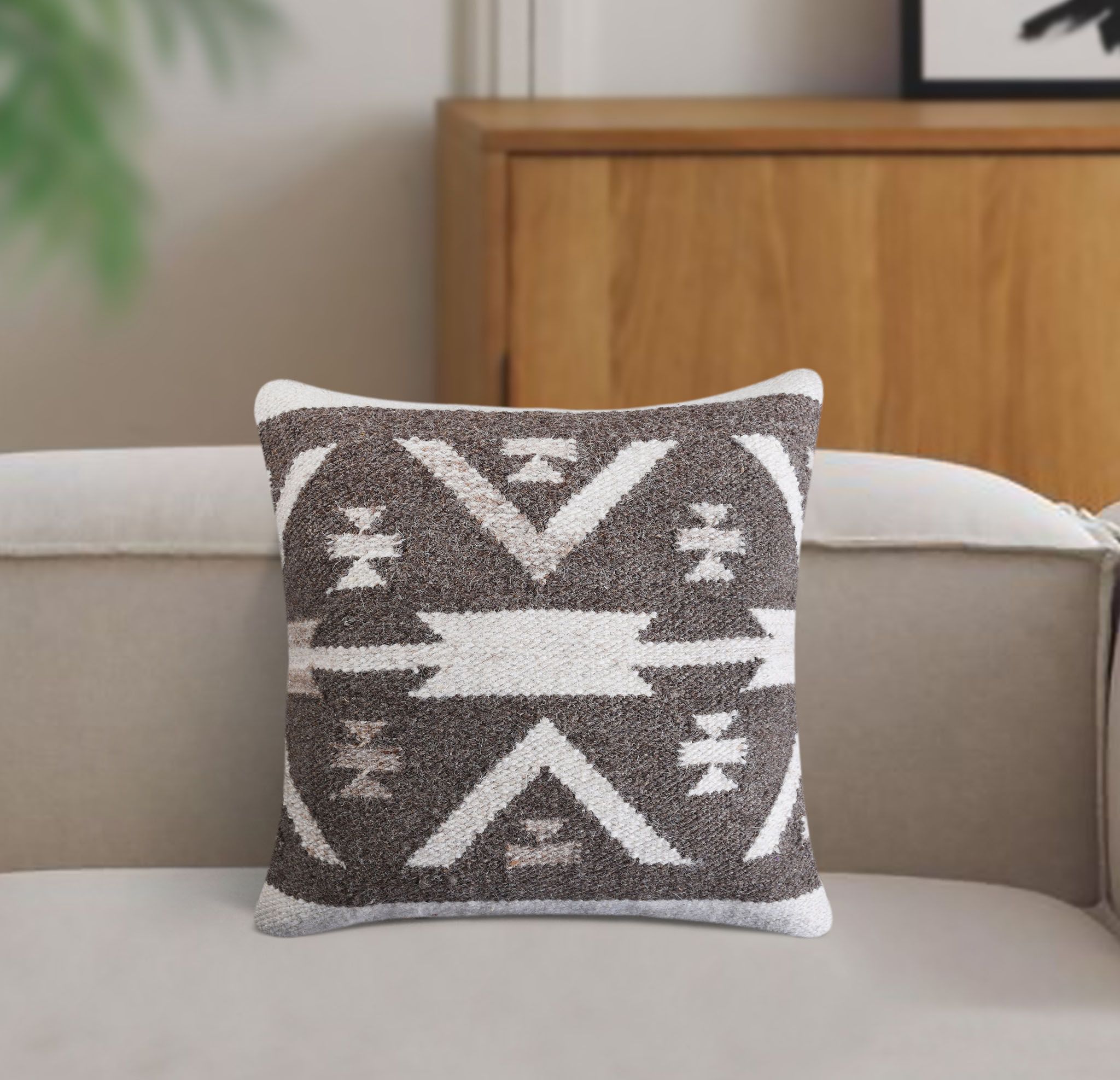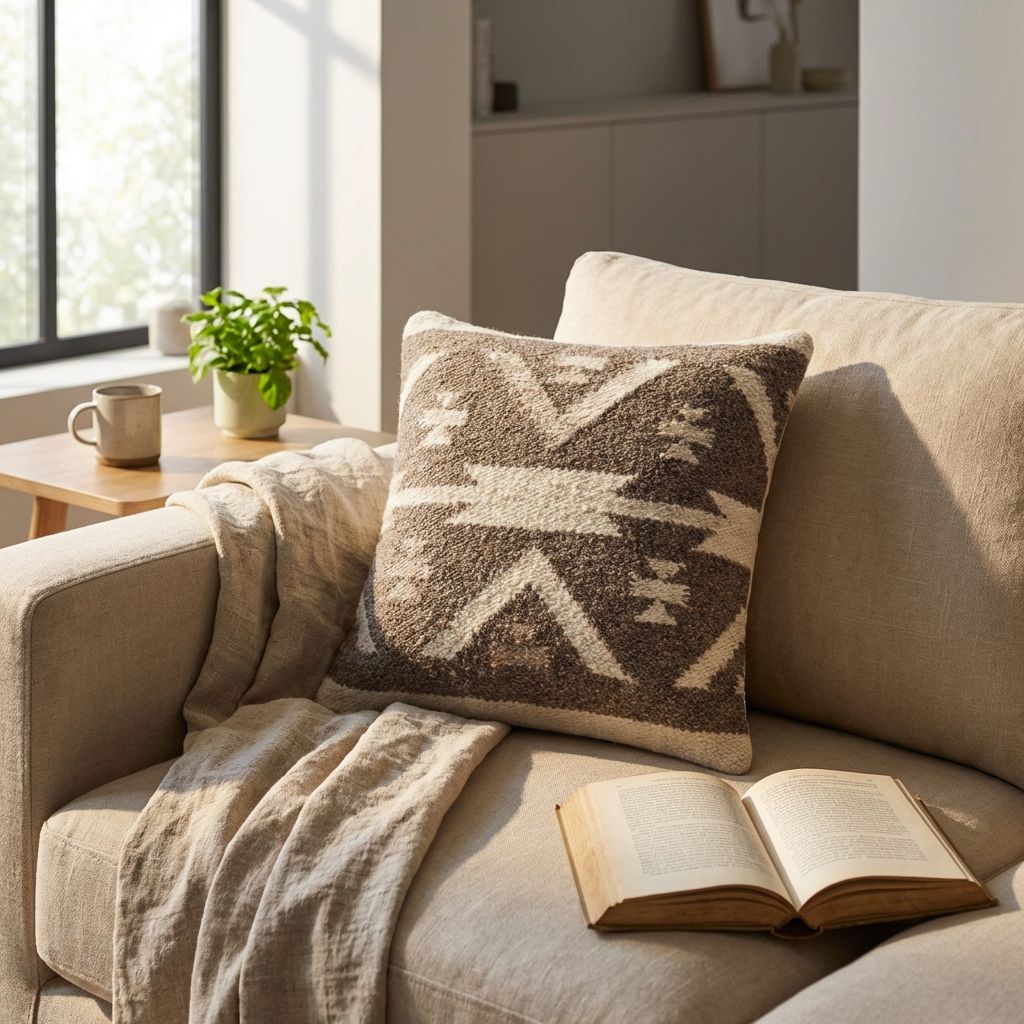 Cuscino decorativo con federa in lana, caratterizzato da texture materiche e lavorazioni in rilievo. Aggiunge un tocco di calore e personalità a divani, poltrone e letti. Il design naturale e neutro lo rende ideale per ogni ambiente.