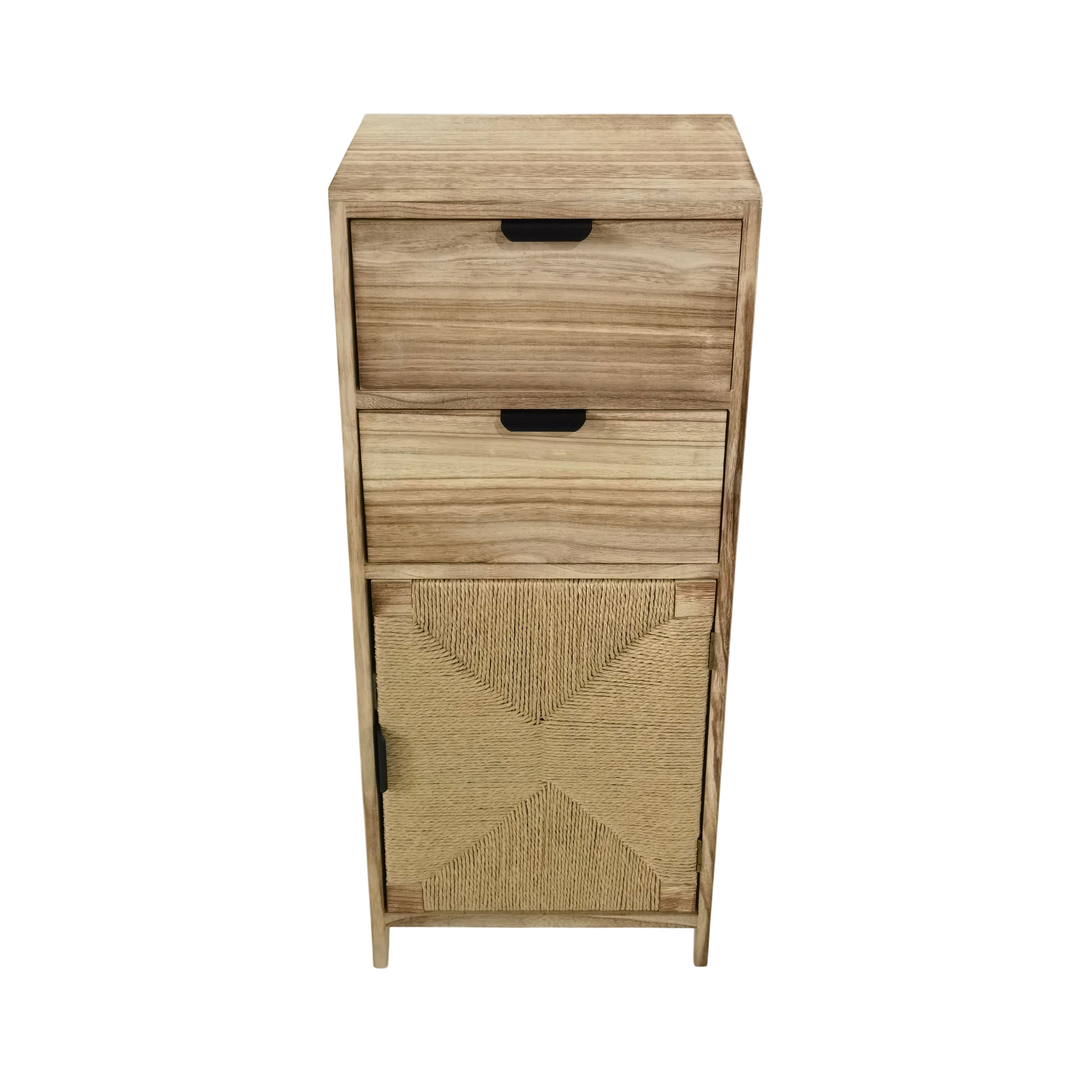 Un mobiletto compatto e raffinato che combina la solidità del legno di Paulownia con il fascino della fibra intrecciata. Dotato di due cassetti e un’anta, offre un perfetto equilibrio tra estetica e funzionalità. Ideale per qualsiasi ambiente, dal soggiorno alla camera da letto