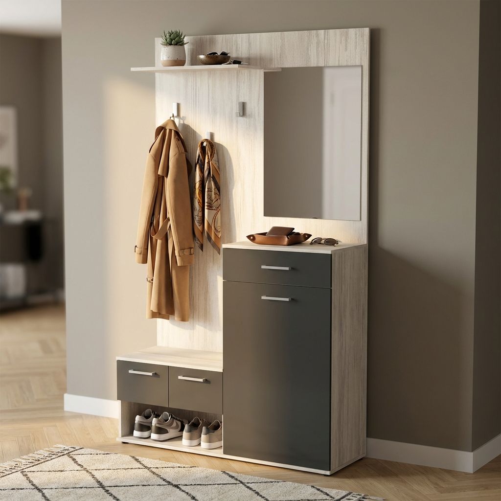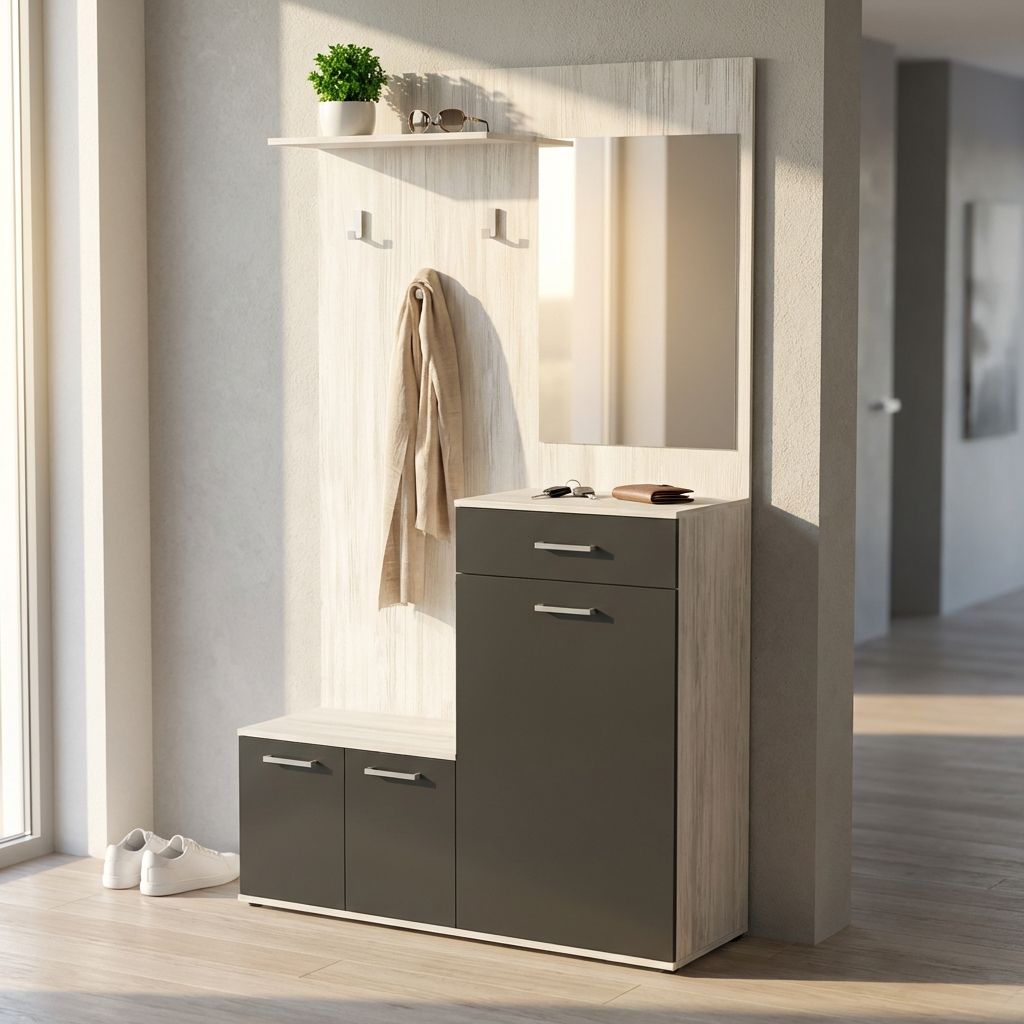 BISCA mobile da ingresso è disponibile in colroe cemento, marrone, nero o bianco
