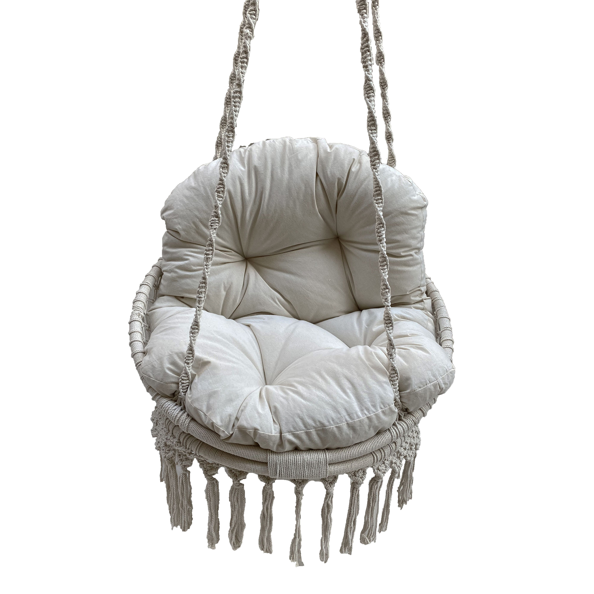 Questa poltrona sospesa in stile boho con la sua struttura rotonda, realizzata in cotone intrecciato macramè e frange decorative, abbraccia il corpo con eleganza e leggerezza. Il morbido cuscino imbottito, generoso e avvolgente, ti accoglie come in un nido, trasformando ogni pausa in un momento di puro piacere. Perfetta per un angolo lettura, una terrazza, una camera da letto dallo stile naturale o una veranda soleggiata, questa poltrona sospesa aggiunge un tocco boho chic che non passa inosservato. Ogni elemento è pensato per farti sentire a casa, ovunque tu sia: il design artigianale, i materiali naturali, la sensazione di essere sospesi tra comfort e stile. Basta un libro, una tazza di tè o semplicemente un po’ di silenzio per trasformare questo angolo in un rifugio personale.