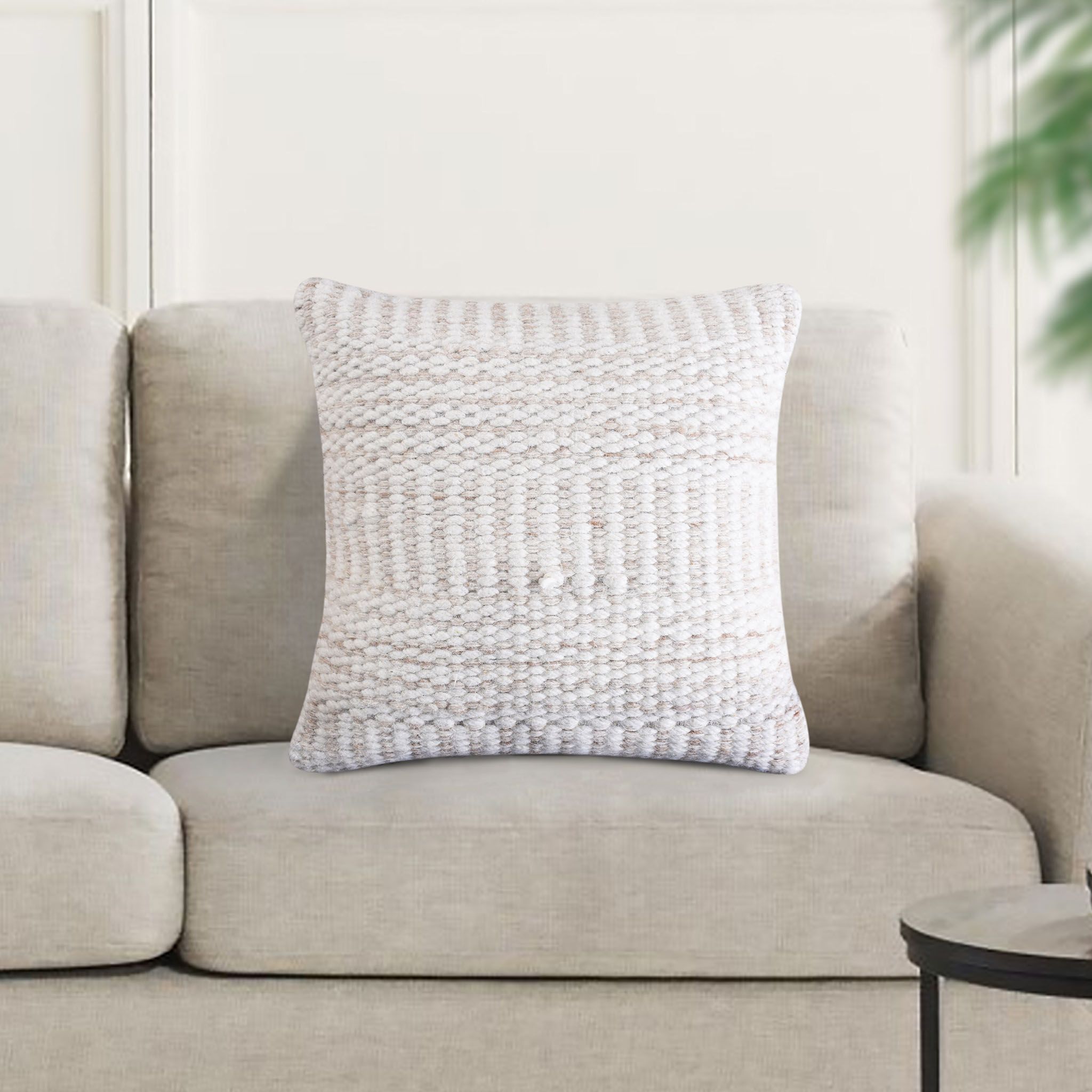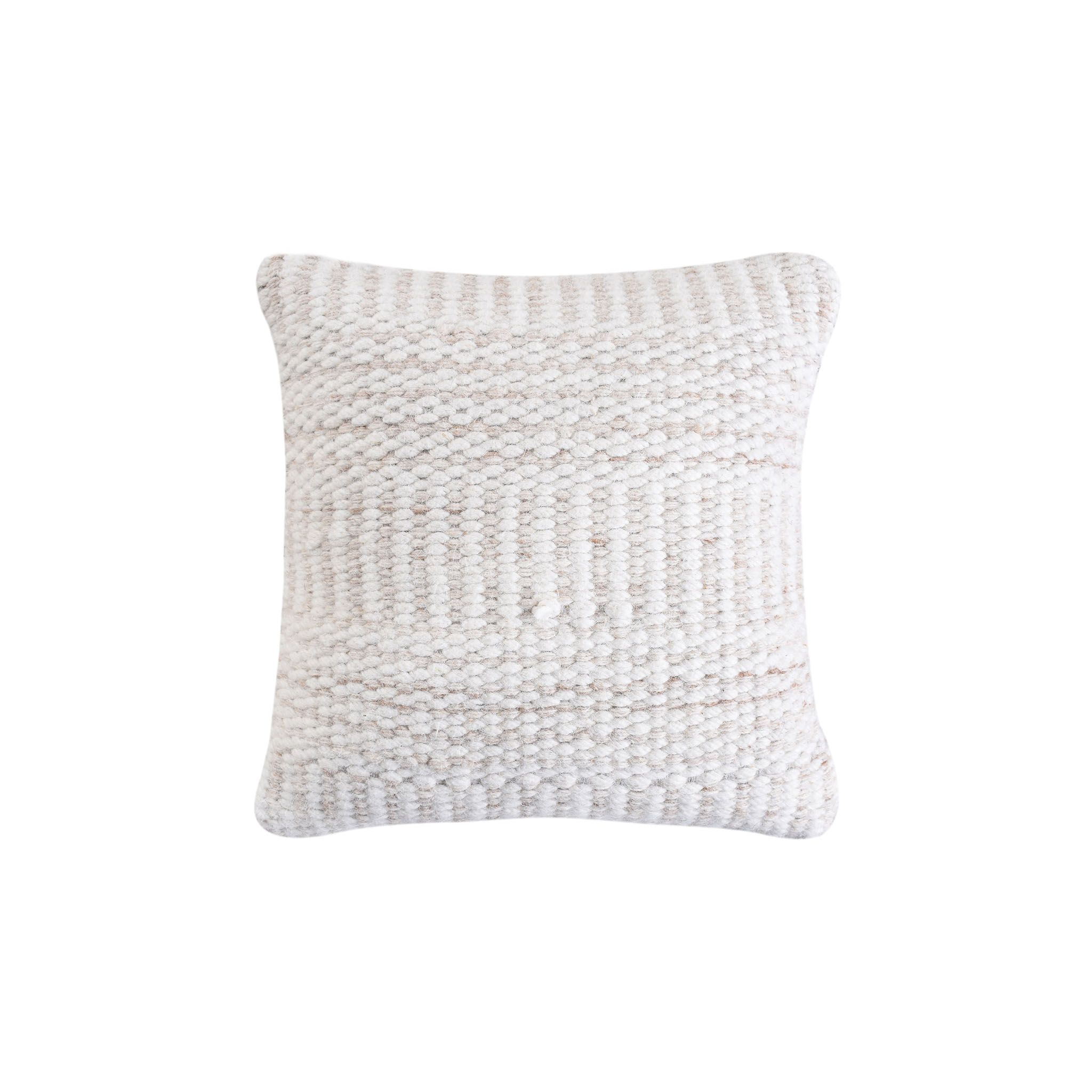 Cuscino decorativo con federa in lana, caratterizzato da texture materiche e lavorazioni in rilievo. Aggiunge un tocco di calore e personalità a divani, poltrone e letti. Il design naturale e neutro lo rende ideale per ogni ambiente.