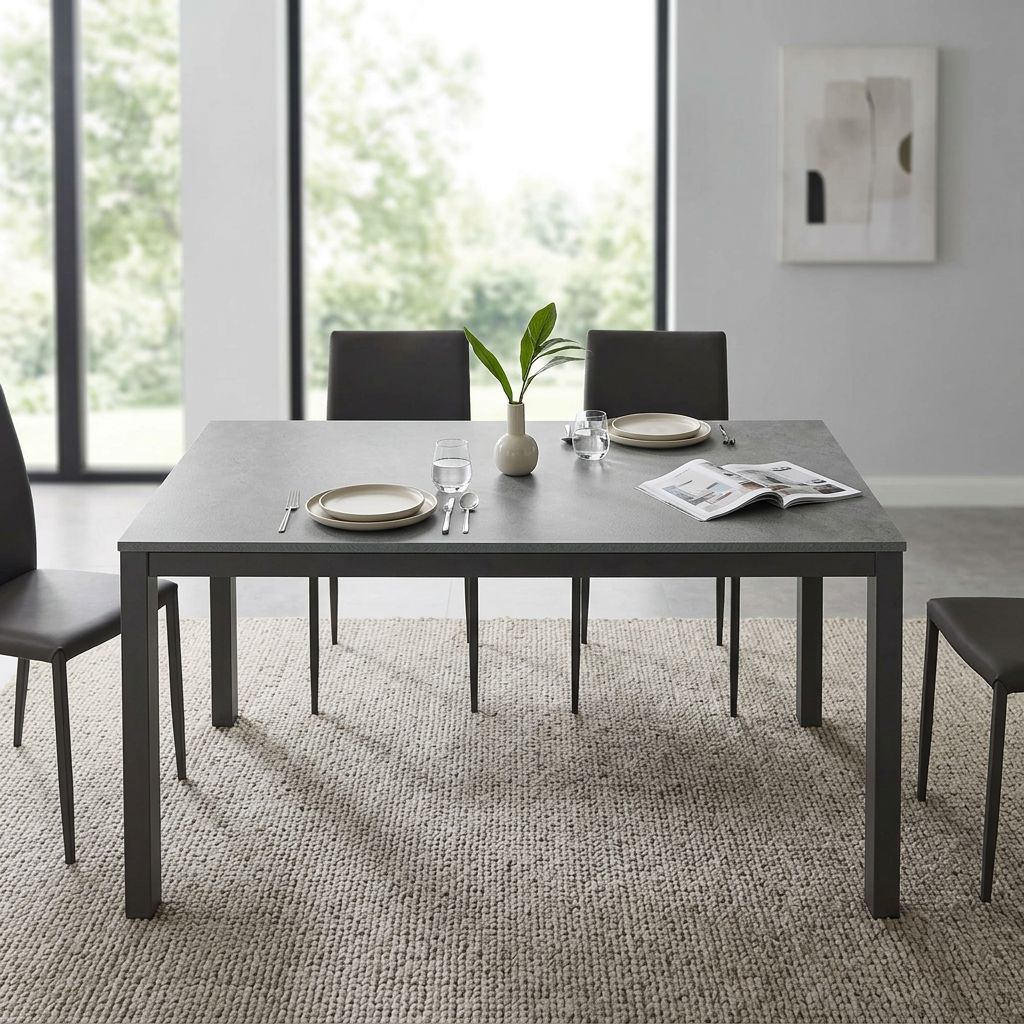 Il tavolo da pranzo BRENDON è disponibile in grigio scuro e in bianco con piano in rovere, in forma quadrata e rettangolare per soddisfare qualsiasi esigenza.