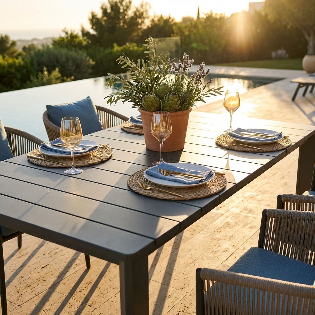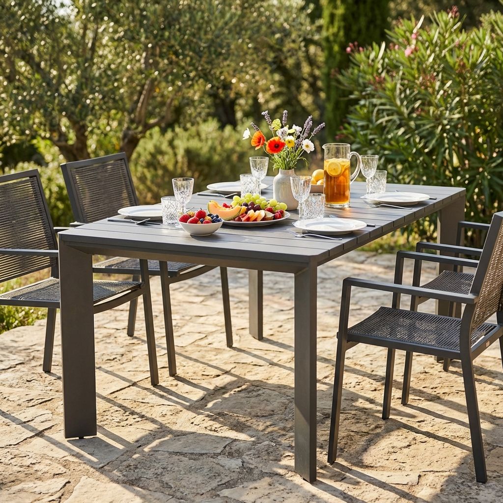BRIDGE, il tavolo da giardino in alluminio che unisce design e funzionalità, è disponibile in 200x100 cm. Scegli tra il bianco chic, il verde naturale, l'antracite sofisticato o il taupe versatile per trasformare il tuo spazio esterno.