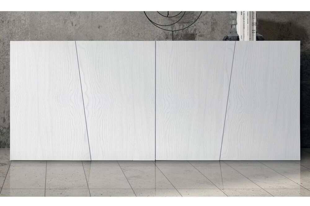 Ti presento la madia Buster: l'addon perfetto per il tuo salone moderno. Realizzata con legno di abete spazzolato bianco, questa madia italiana contribuirà a illuminare la tua stanza. Le 4 ante oblique aggiungono un tocco di stile che lascerà a bocca aperta i tuoi ospiti.