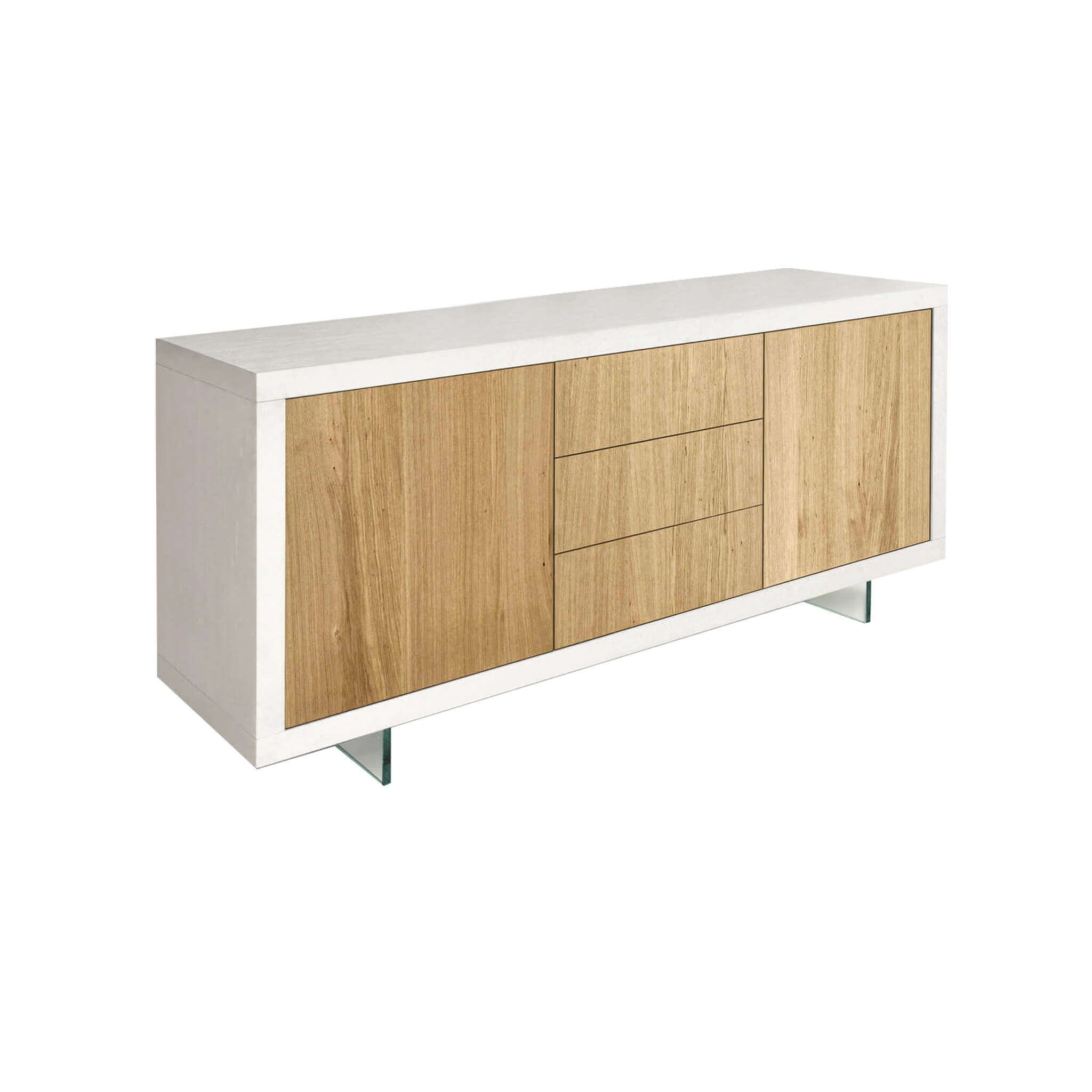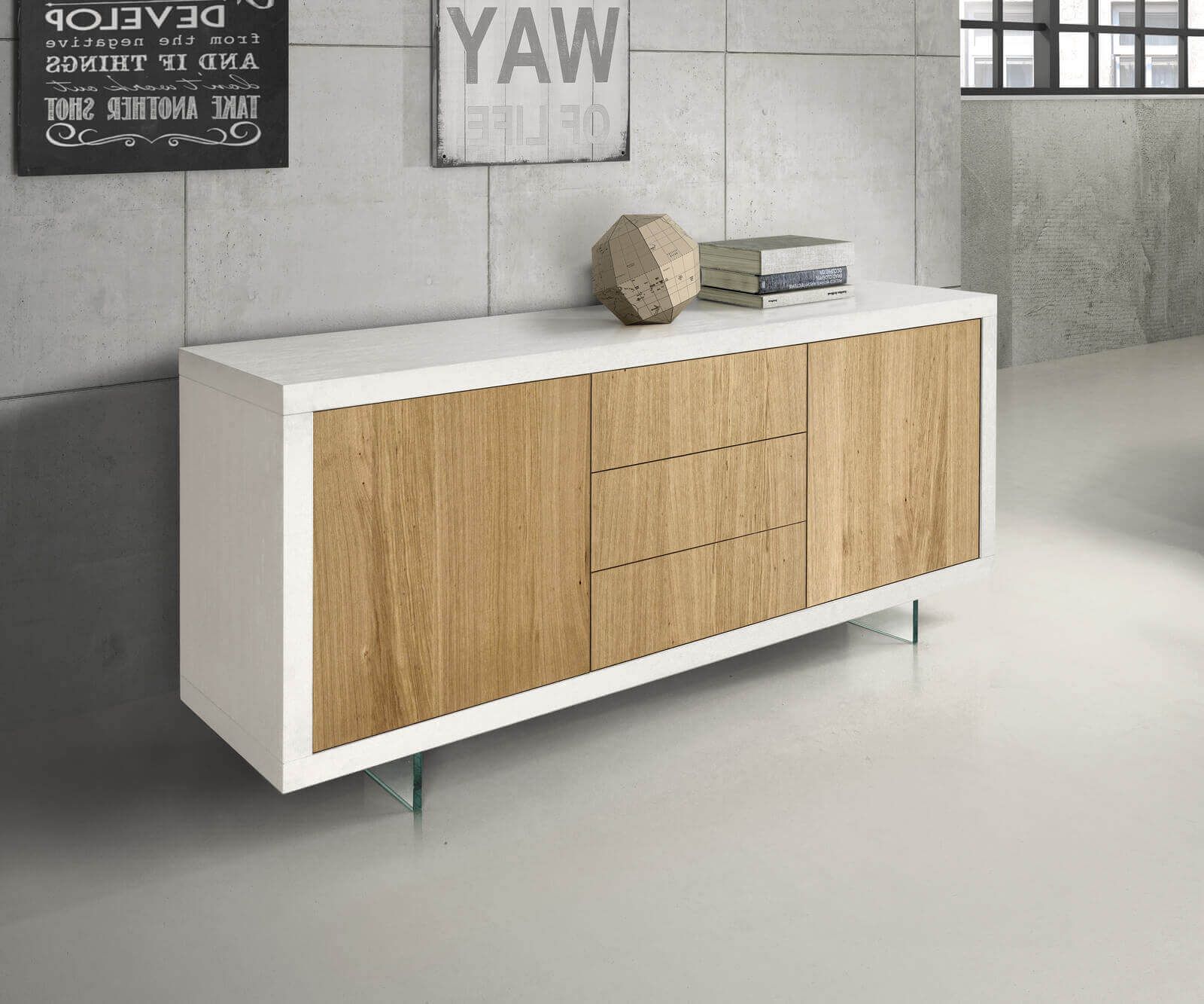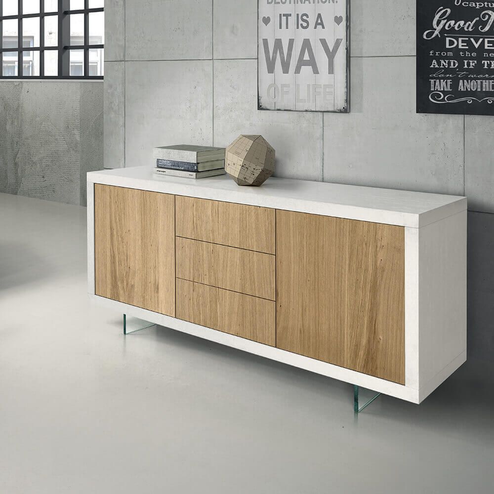Hai mai desiderato un mobile che potesse arredare sia il tuo salotto che il tuo ufficio? Beh, cercare oltre la madia Caleb potrebbe essere esattamente quello che stai cercando!Con il suo elegante colore bianco, questa credenza italiana può farsi notare ovunque tu la metta. È come avere un pezzo d'arte nel tuo spazio! Ma non è solo la sua bellezza che brilla, ma anche il suo design intrinsecamente raffinato. Con linee pulite che disegnano la sua forma rettangolare, la madia Caleb è divisa in tre settori distinti. La parte centrale presenta tre cassetti con apertura push and pull, perfetti per riporre tutto, dalle posate agli accessori per l'ufficio.