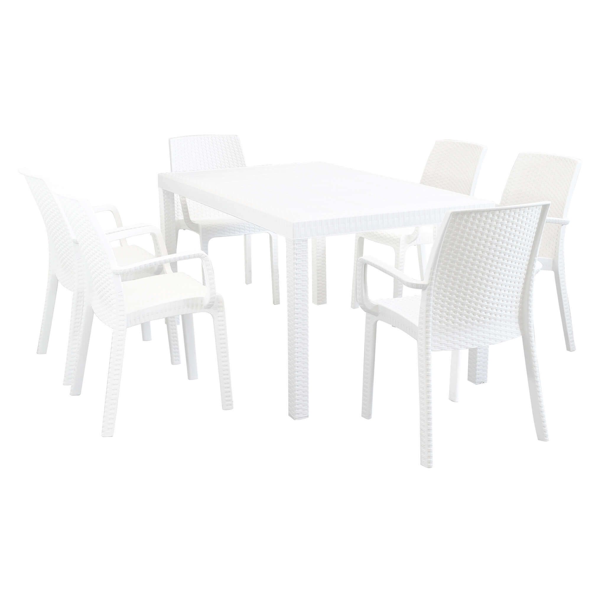 Il set tavolo CALIGOLA è disponibile in colore antracite, bianco, marrone e taupe, con 4 e 6 sedute