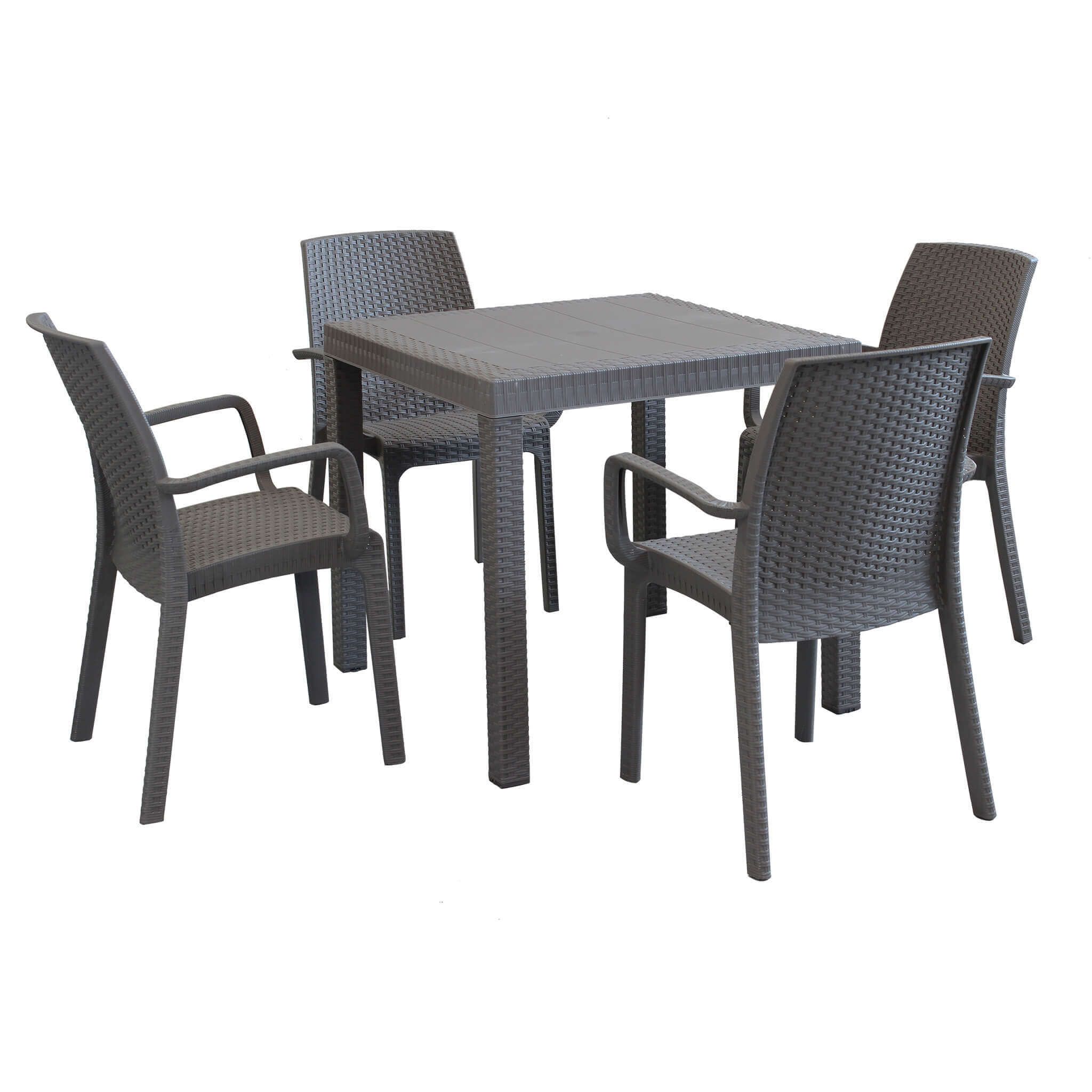 Il set tavolo CALIGOLA è disponibile in colore antracite, bianco, marrone e taupe, con 4 e 6 sedute