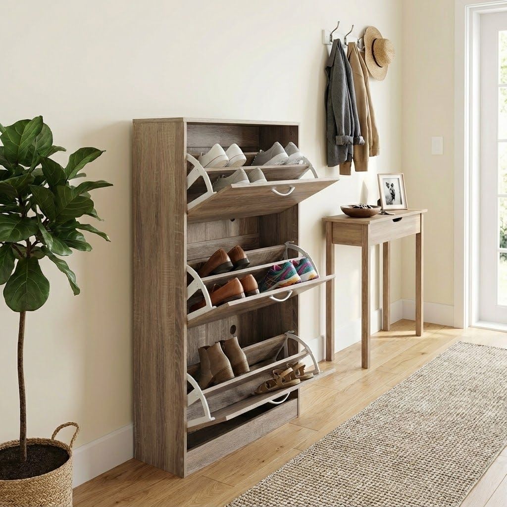 La scarpiera CALISS è disponibile in bianco, grigio chiaro, grigio scuro e marrone in versione da 2,3,4 ante