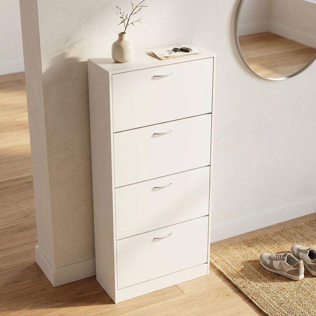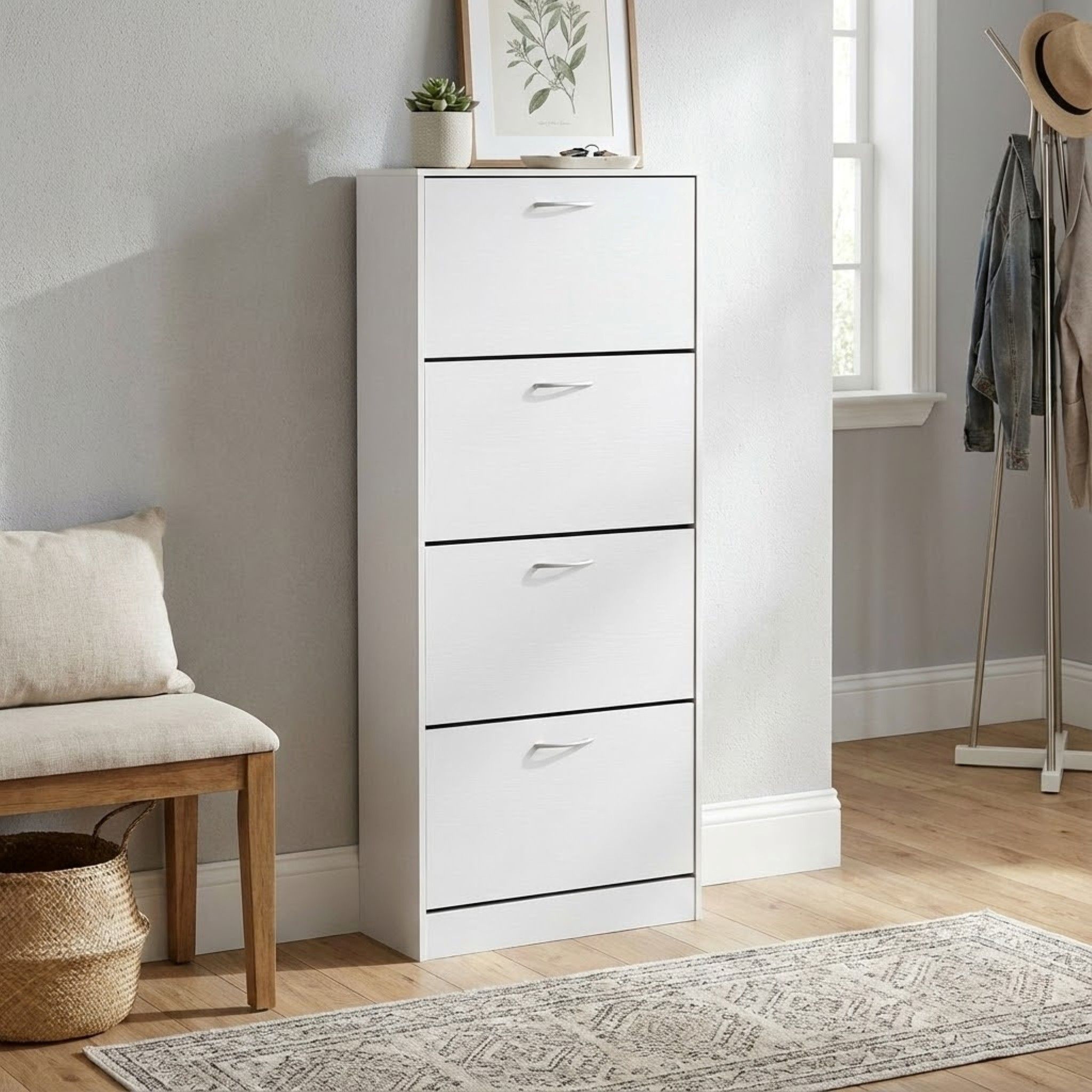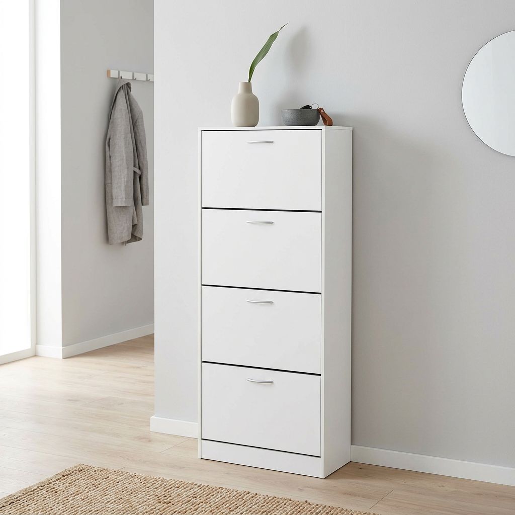 La scarpiera CALISS è disponibile in bianco, grigio chiaro, grigio scuro e marrone in versione da 2,3,4 ante