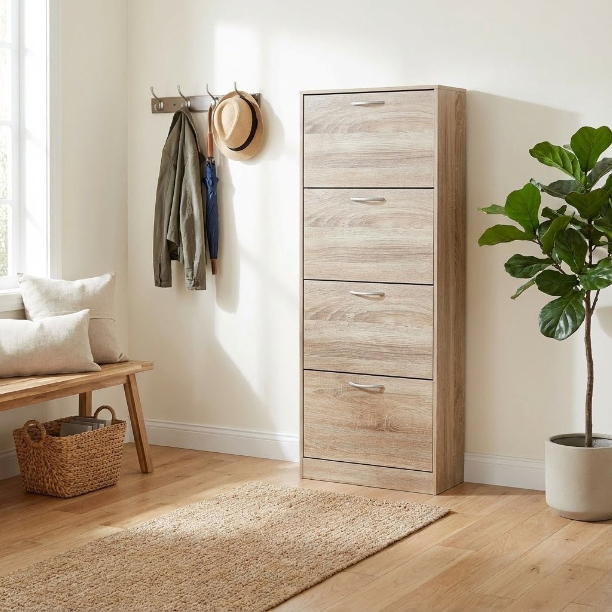 La scarpiera CALISS è disponibile in bianco, grigio chiaro, grigio scuro e marrone in versione da 2,3,4 ante