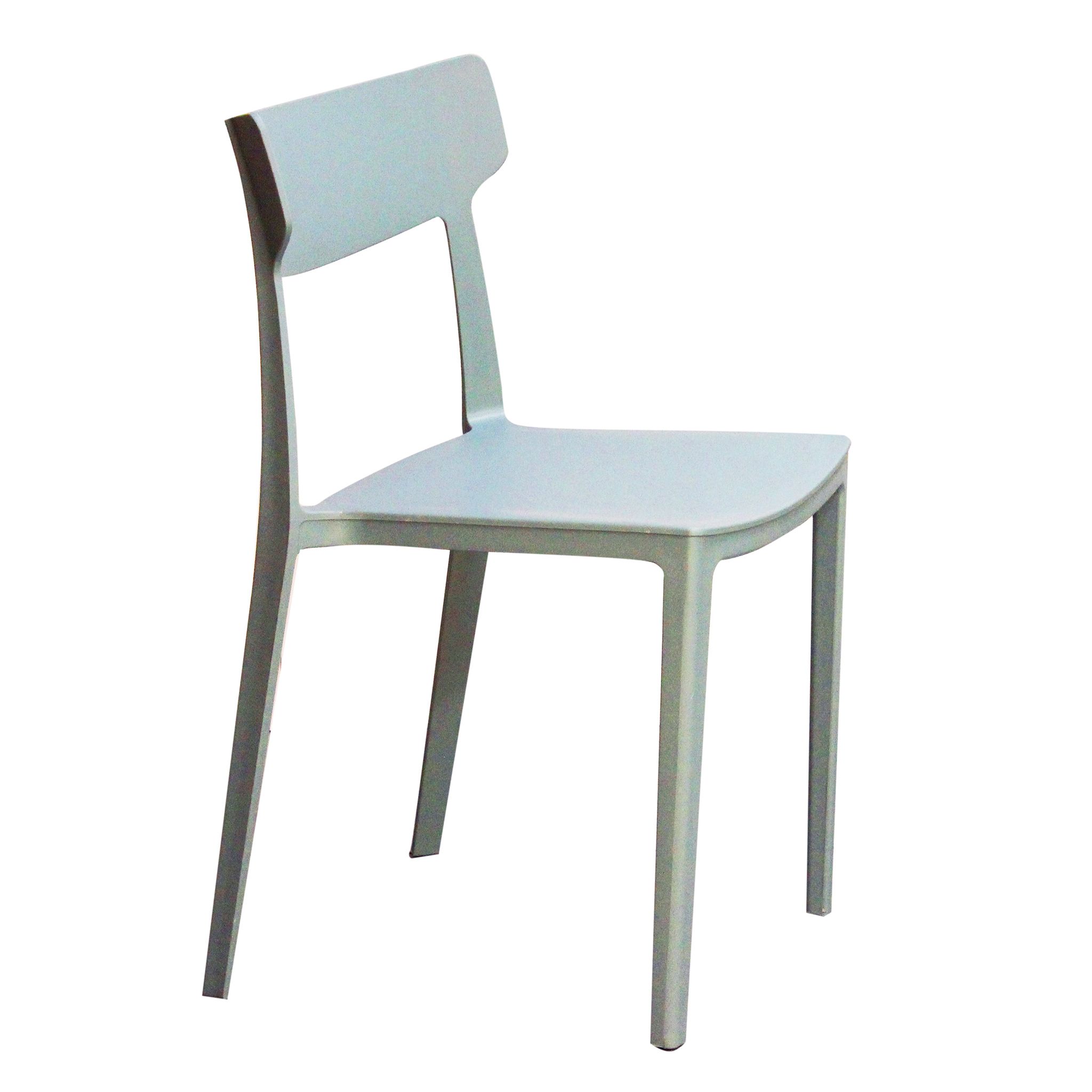 Sedia moderna in polipropilene, disponibile in verde chiaro, bianco, nero e grigio. Leggera, resistente e perfetta per ambienti interni ed esterni.