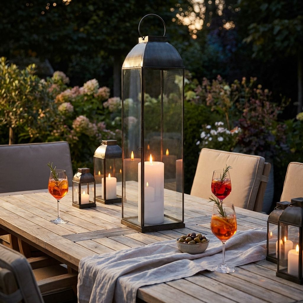 Trasforma il tuo tavolo da giardino con una semplice candela e la nostra lanterna. Metti le grandi intorno al tavolo e una piccola sopra: il tuo angolo di giardino prenderà vita!