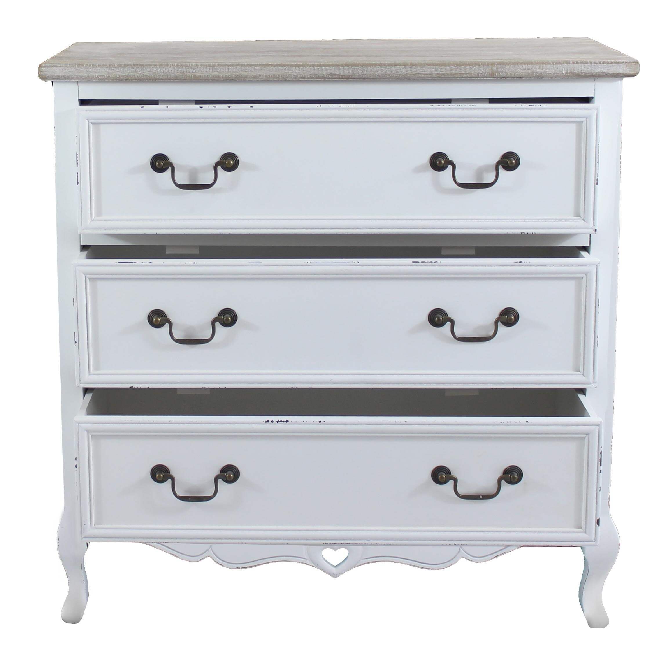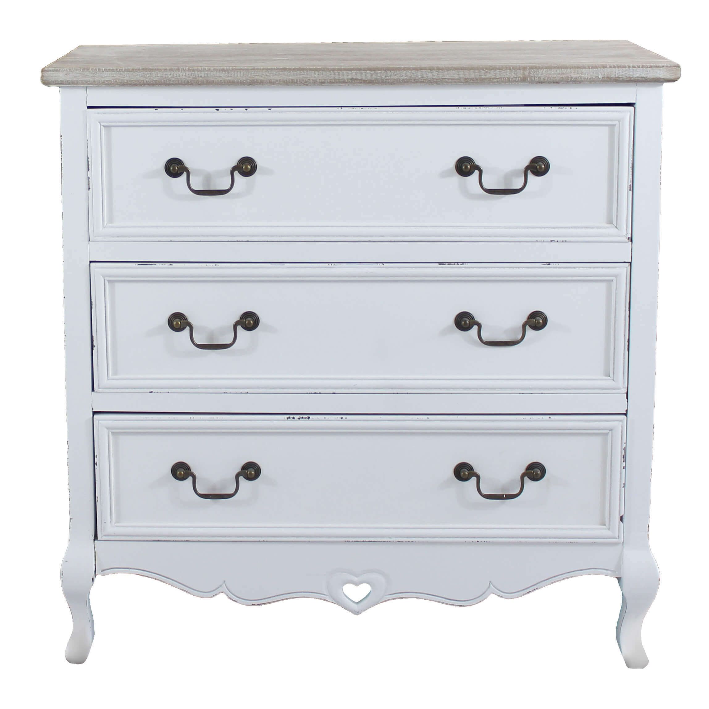 CAROLINE - cassettiera 3 cassetti in legno di paulownia shabby chic
